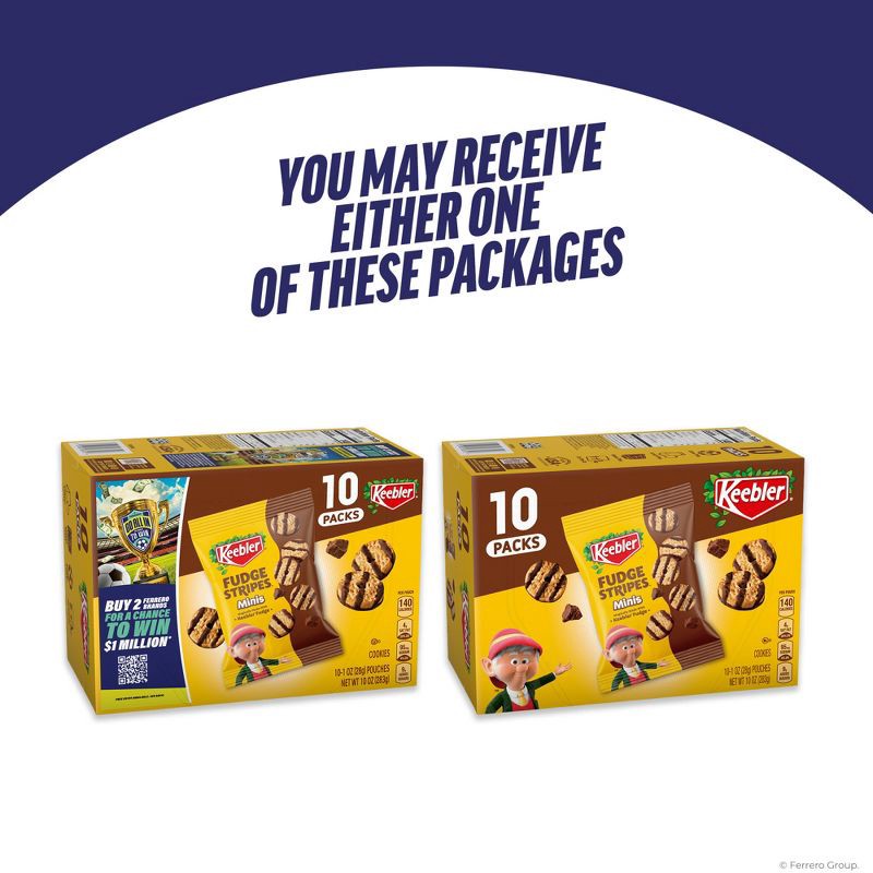 - One 10 Count package of Keebler Fudge Stripes Mini Original Cookies, the right size for packing and enjoying anywhere