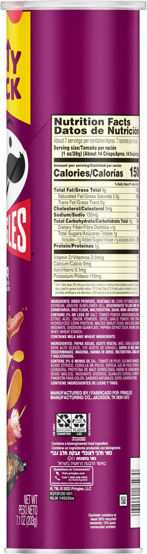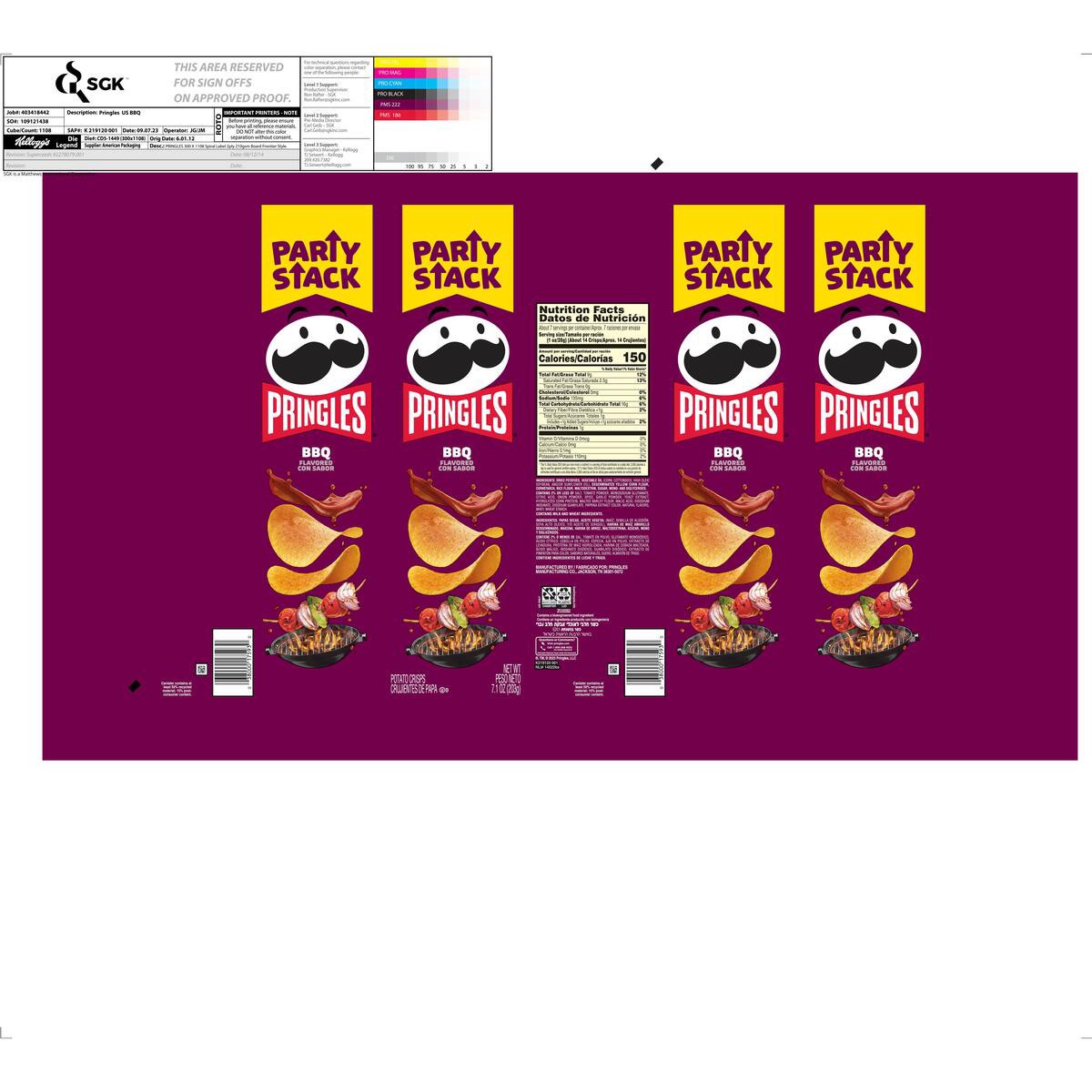 Pringles Potato Crisps Chips Bbq Lunch Snacks - 7.1 Oz