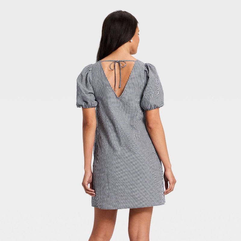 Women's Puff Sleeve Mini A-Line Dress - A New Day™ Gingham L