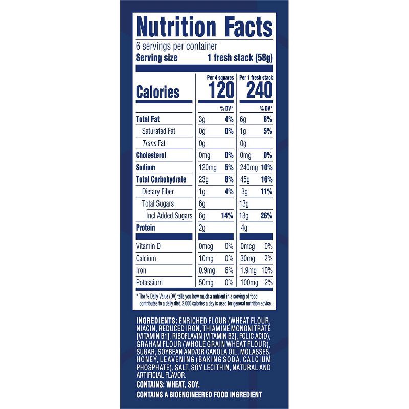 Enriched Flour (Wheat Flour, Niacin, Reduced Iron, Thiamine Mononitrate [Vitamin B1], Riboflavin [Vitamin B2], Folic Acid), Graham Flour (Whole Grain Wheat Flour), Sugar, Soybean and/or Canola Oil, Mo…