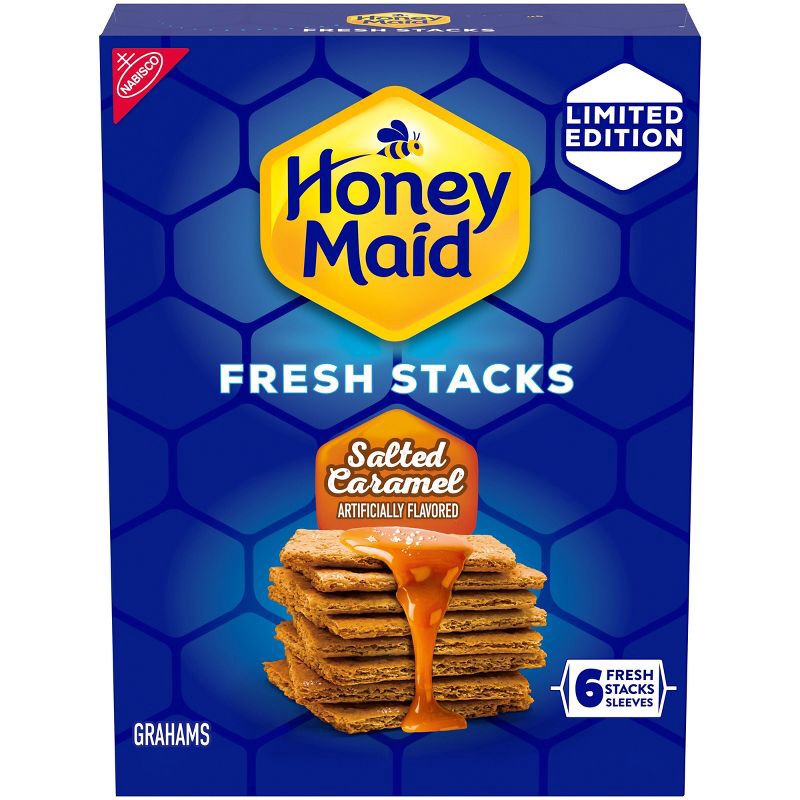 - One 12.2 oz box of limited edition HONEY MAID Salted Caramel Fresh Stacks Grahams, Salted Caramel Graham Crackers, 6 total fresh stacks