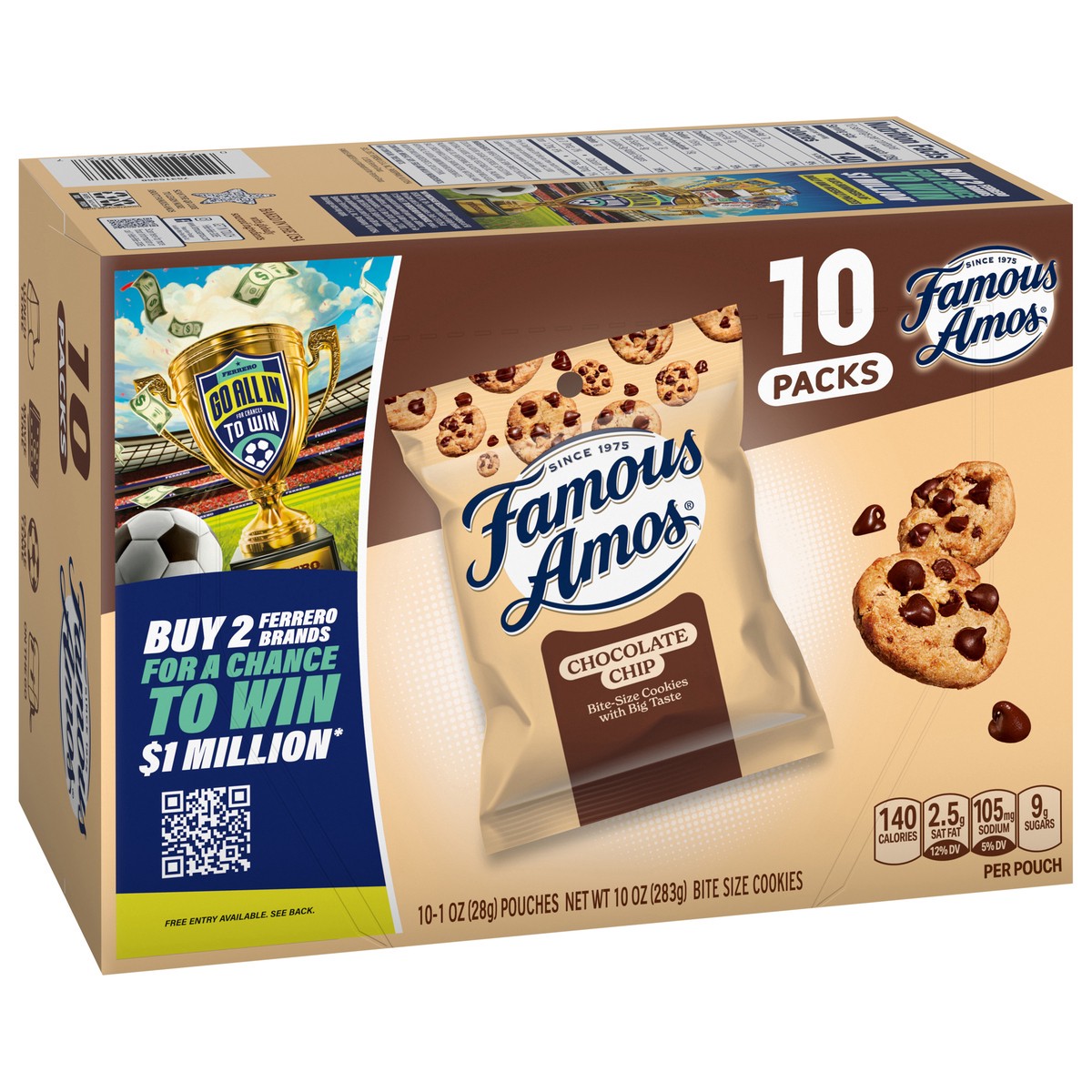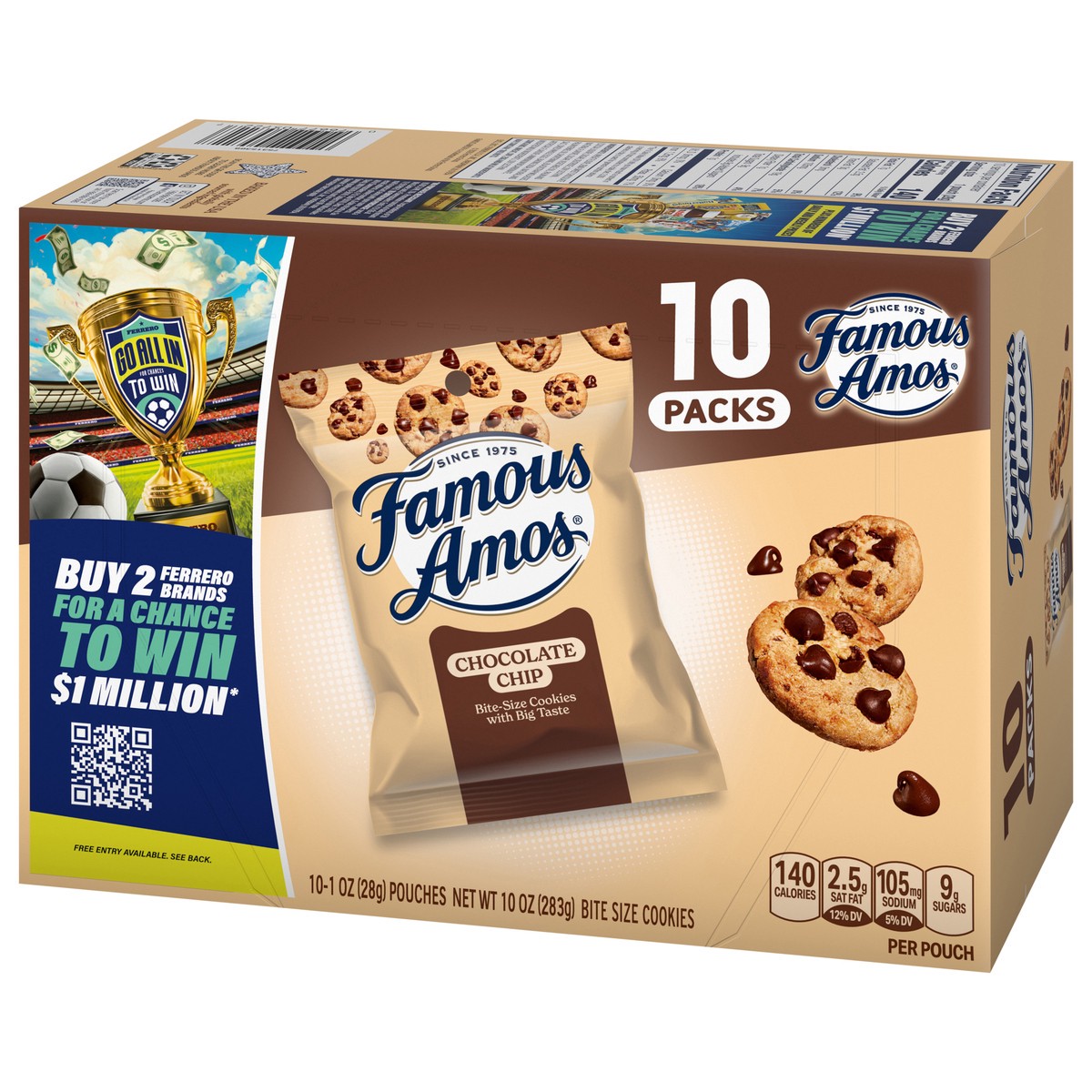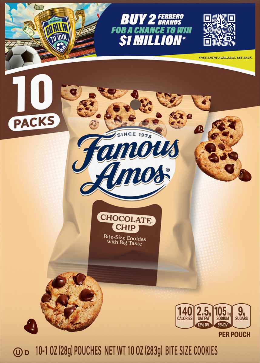 Indulge in the classic taste of Famous Amos Bite-Size Chocolate Chip Cookies, now in a convenient 12-count snack pack box that's perfect for everyday snacking. Each delicious chocolate chip cookie is …
