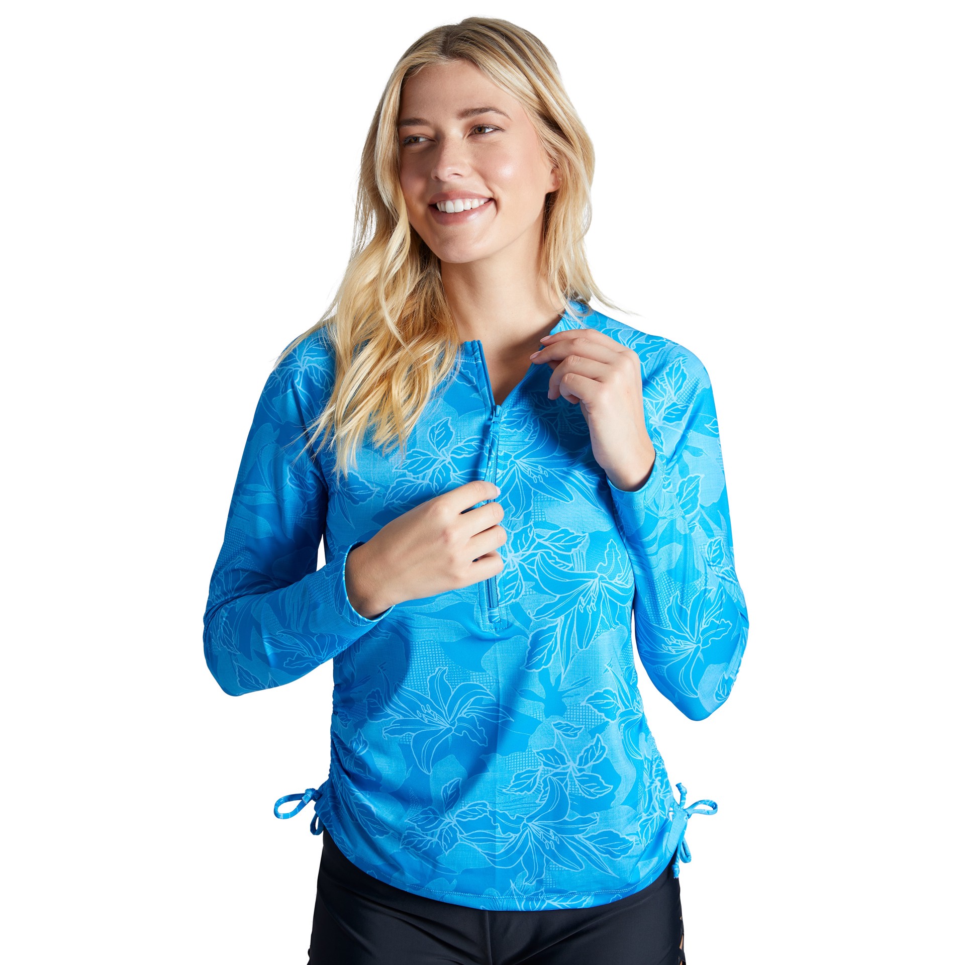 Free Country UPF 50+ Sun Protection Women's Blue Light weight Knit Long sleeve Half zip ( XL )