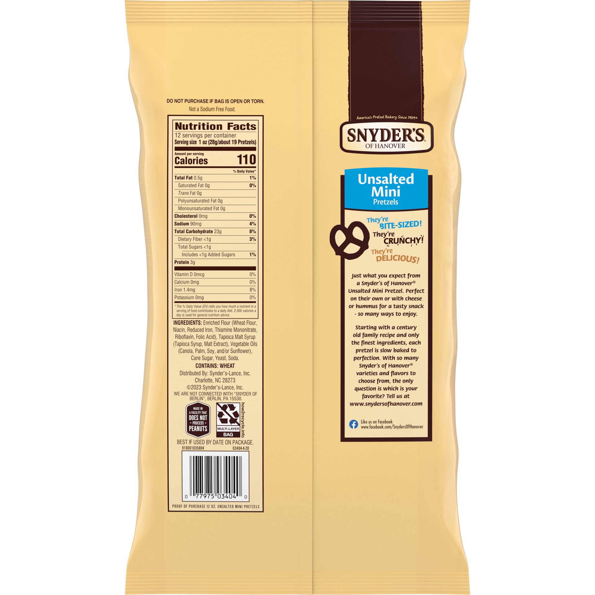 Snyder's Of Hanover Unsalted Mini Pretzels - 12 Oz