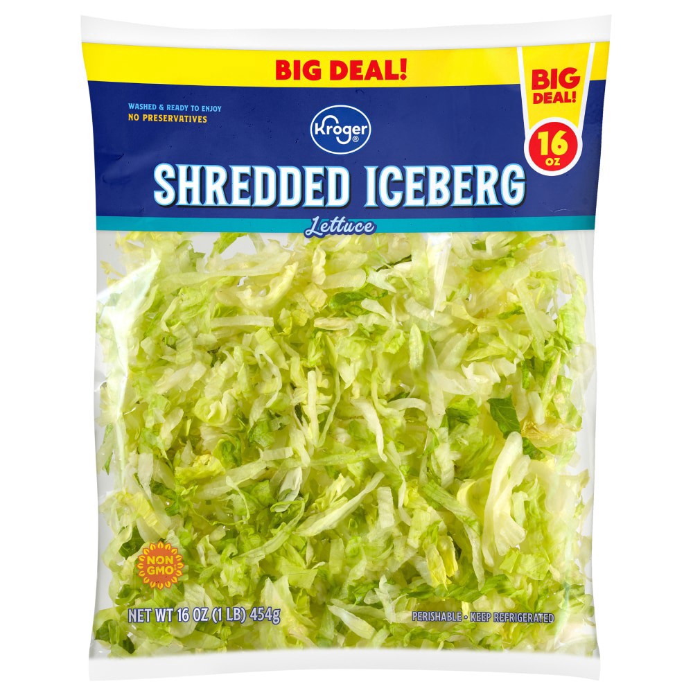 Kroger® Iceberg Shredded Lettuce Bagged Salad BIG DEAL! delivers deliciousness with every bite! Use it to stack on burgers, tacos, or use in a salad. Every bag comes ripe and ready. Just open, serve, …
