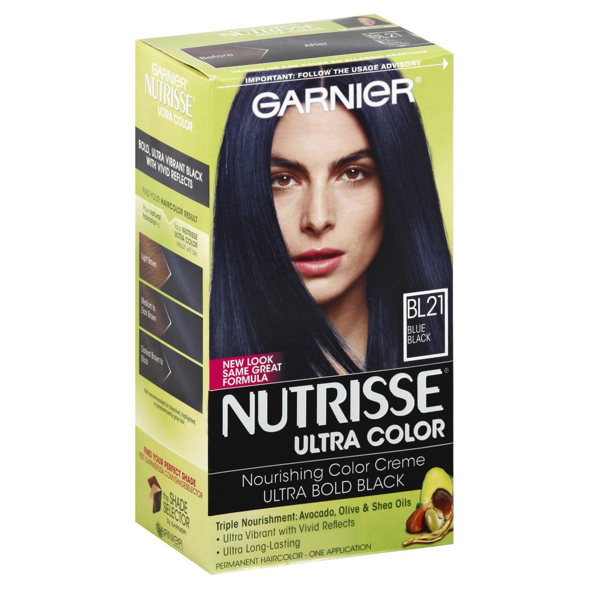 Nourishing color creme ultra bold black. Triple Nourishment: avocado, olive & shea oils. Ultra vibrant with vivid reflects. Ultra long-lasting. One application. New look same great formula. Same great…