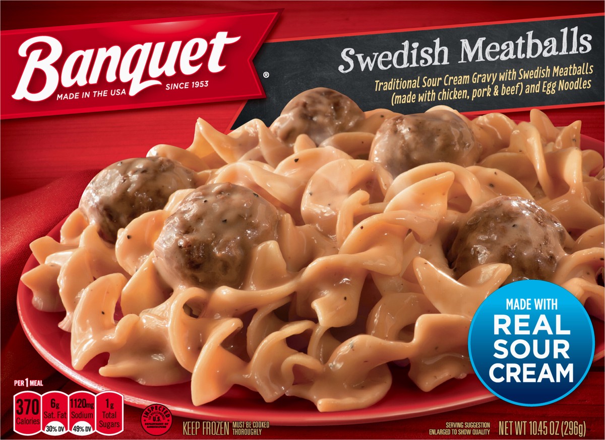 With quality, mouthwatering ingredients, a great meal is minutes away with Banquet Classic Swedish Meatballs. Treat yourself to traditional gravy, made with real sour cream, blanketing Swedish meatbal…