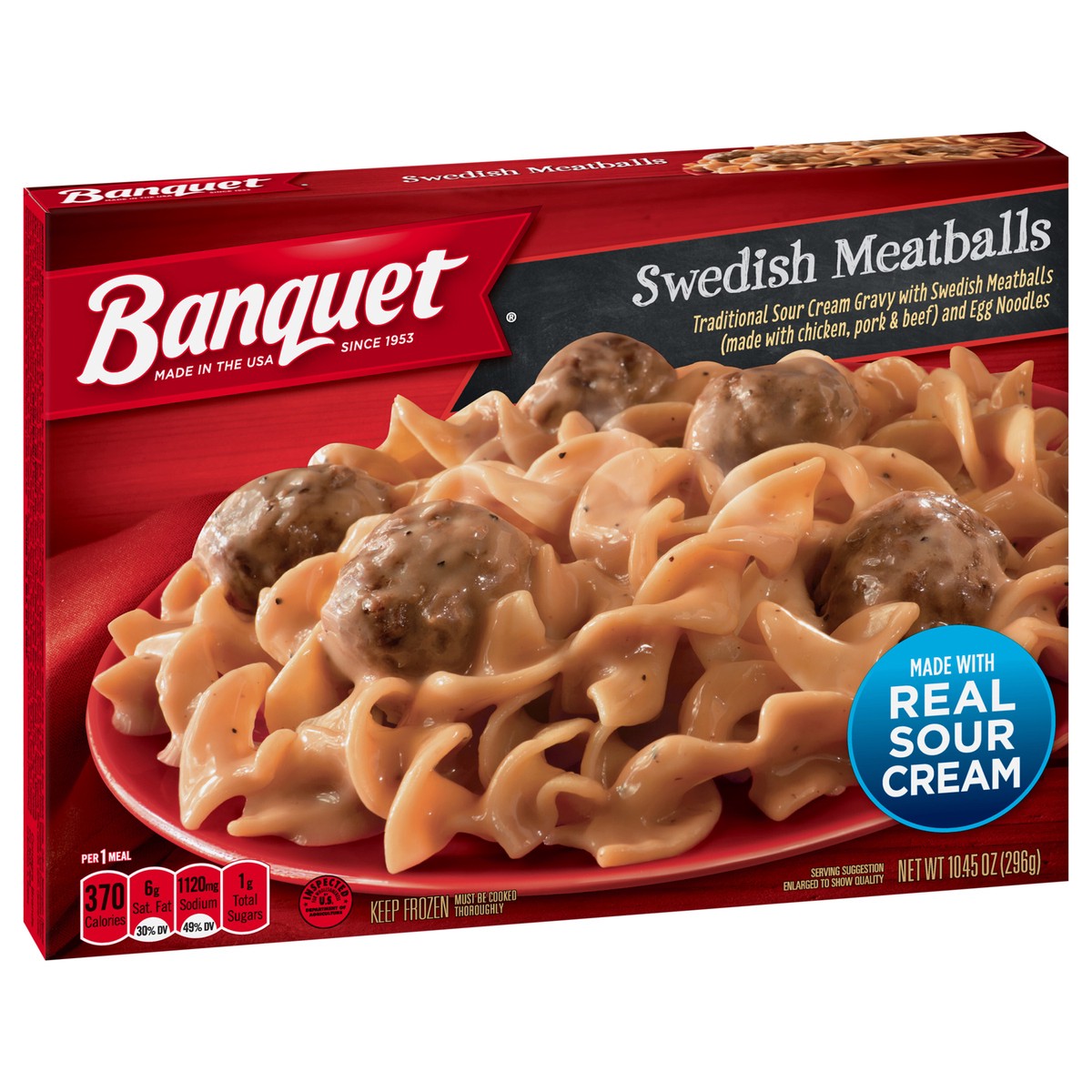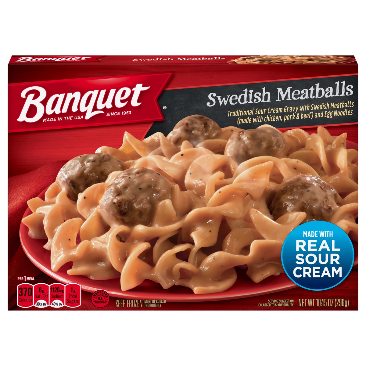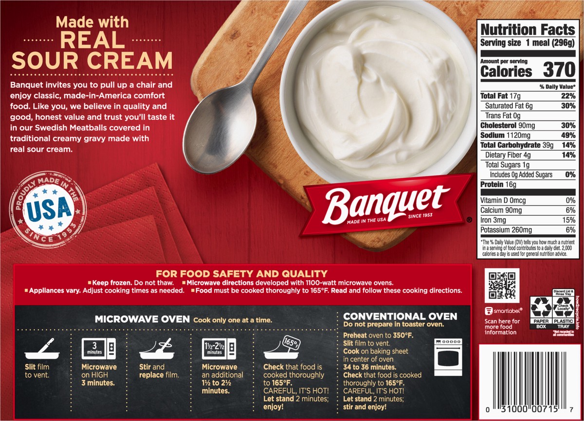 Banquet Swedish Meatballs frozen meal brings the home-cooked flavor to your table in minutes. This frozen dinner features traditional sour cream gravy with Swedish meatballs and egg noodles for delici…