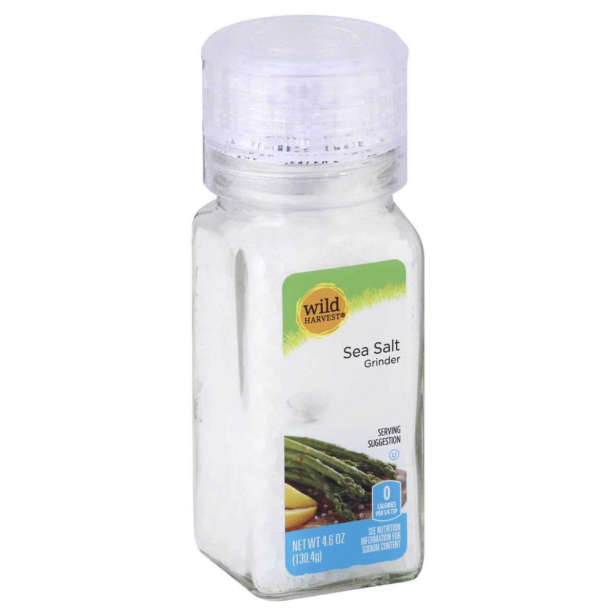 0 calories per 1/4 tsp. See nutrition information for sodium content. Please recycle. 877-932-7948, mywildharvest.com. Packed in USA.