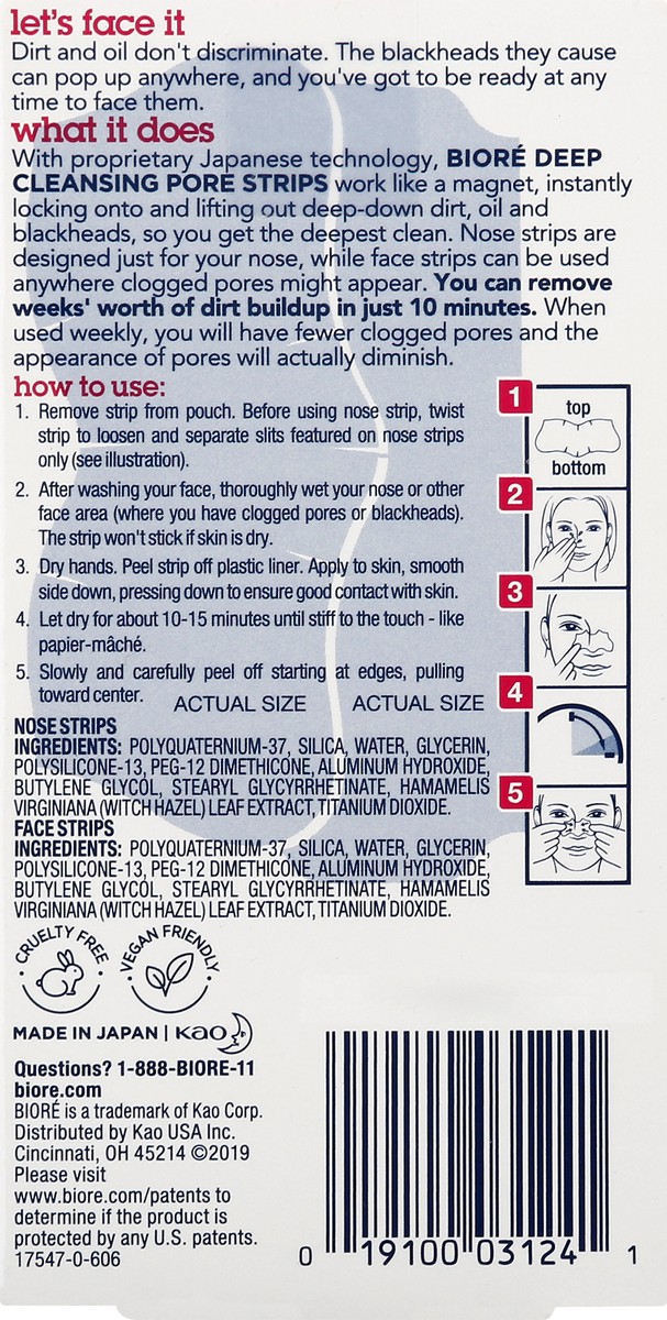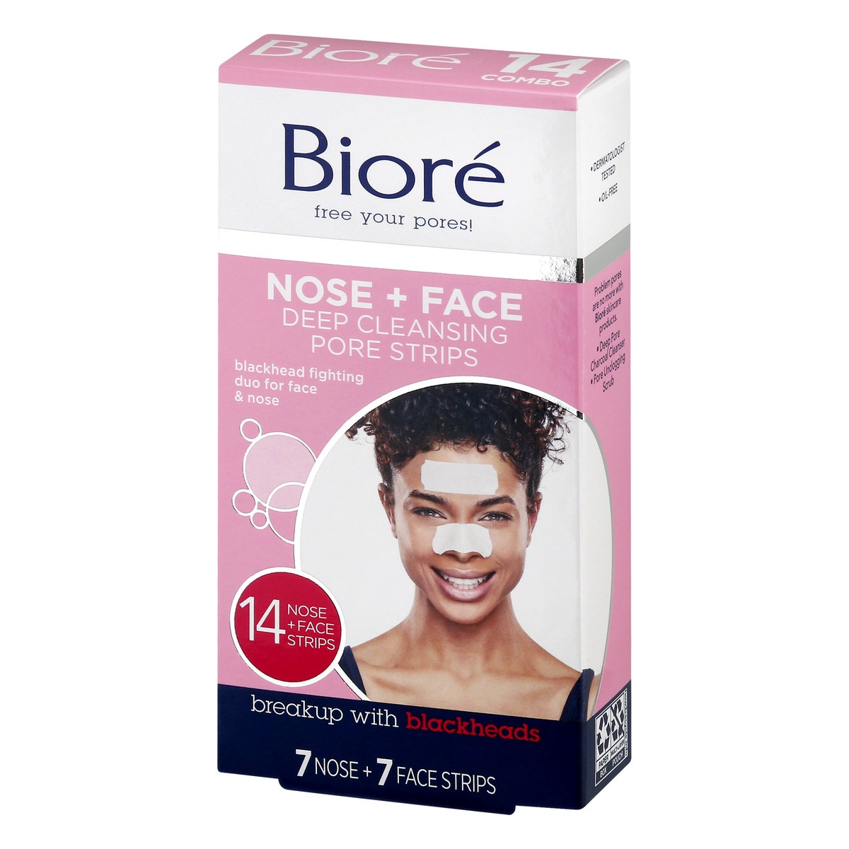 Biore Nose+Face, Deep Cleansing Pore Strips, 7 Nose + 7 Chin or Forehead, with Instant Blackhead Removal and Pore Unclogging, 14 Count, Oil-free, Non-Comedogenic Use
