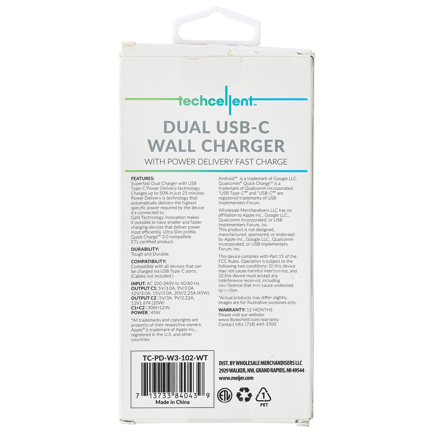 Techcellent 2 Usb C Pd Wall Charger, 45w White