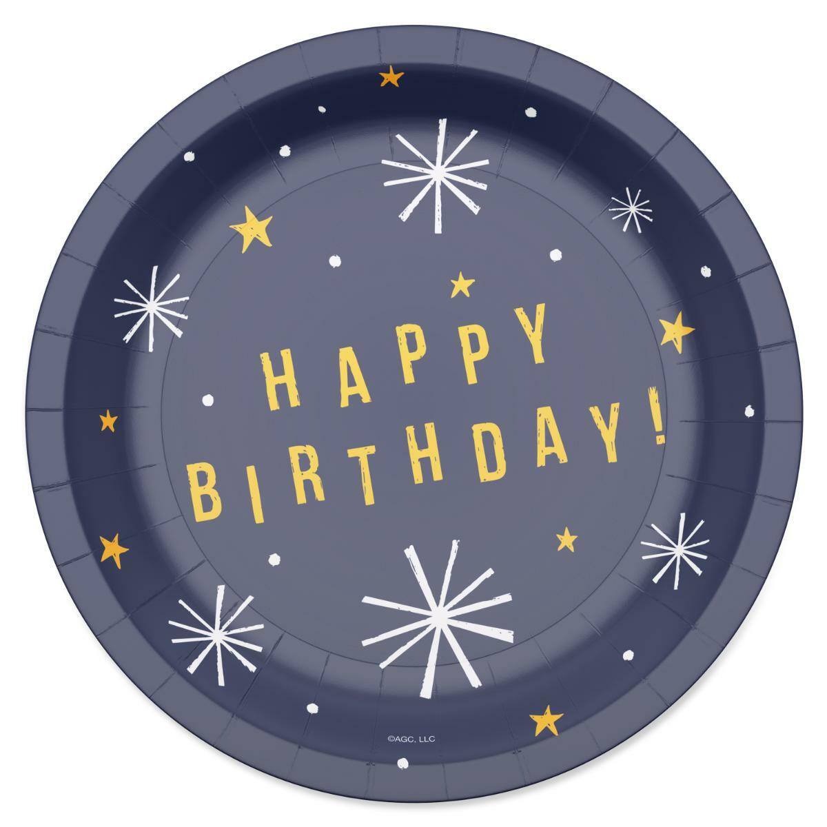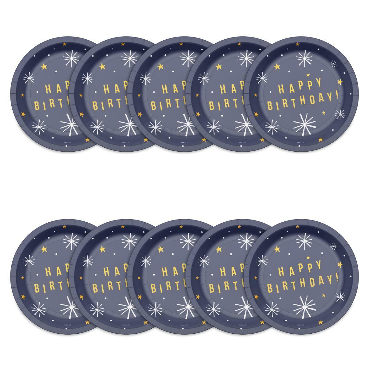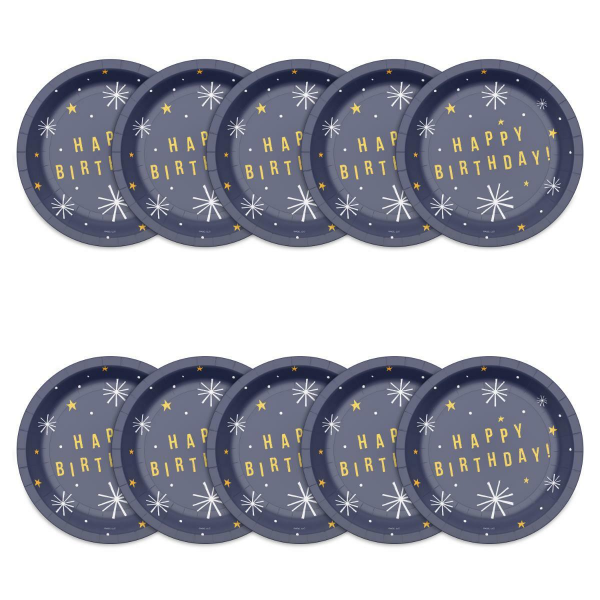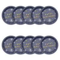 Blast off your birthday celebration with these fun paper plates! Sold in a pack of 10, the design features Happy Birthday against a navy-blue background with bright and beautiful stars. The 7-inch siz…