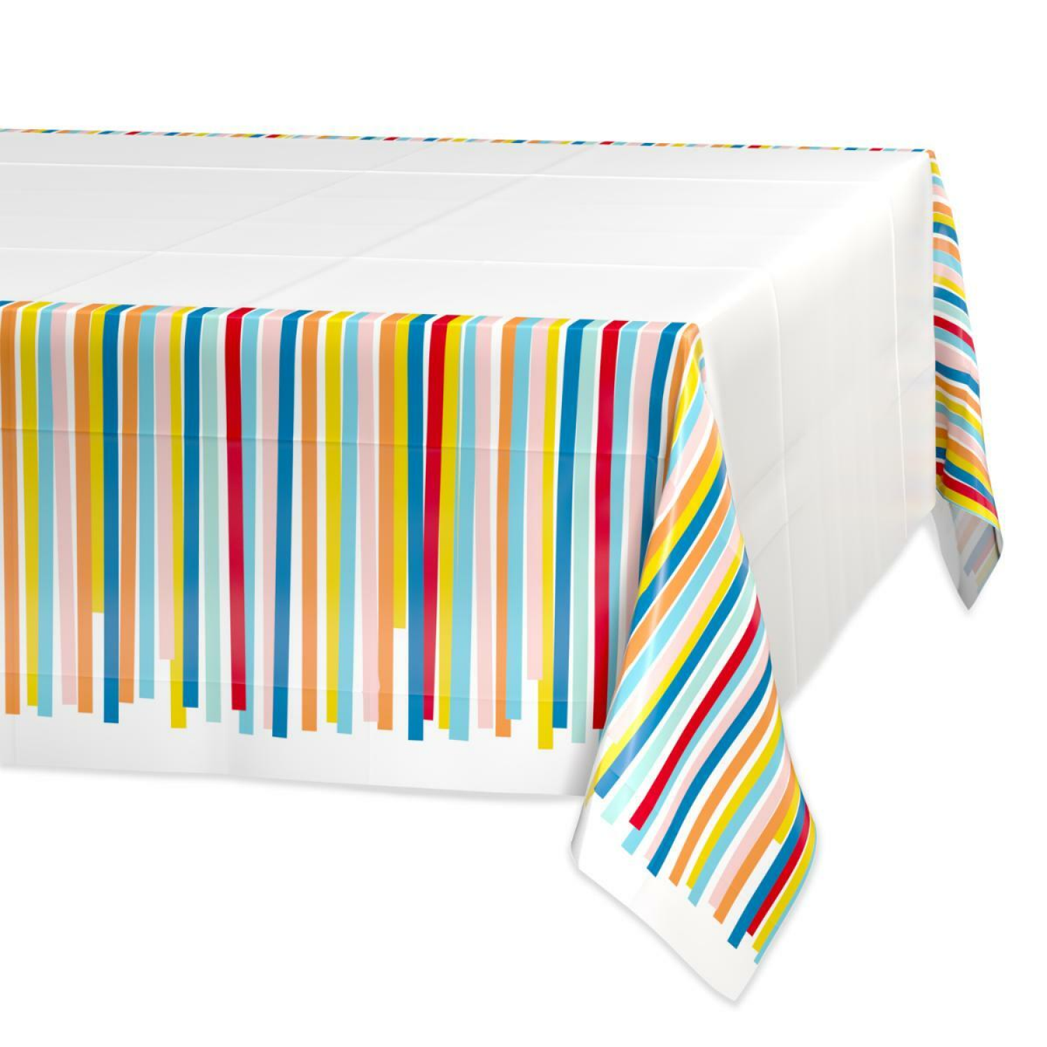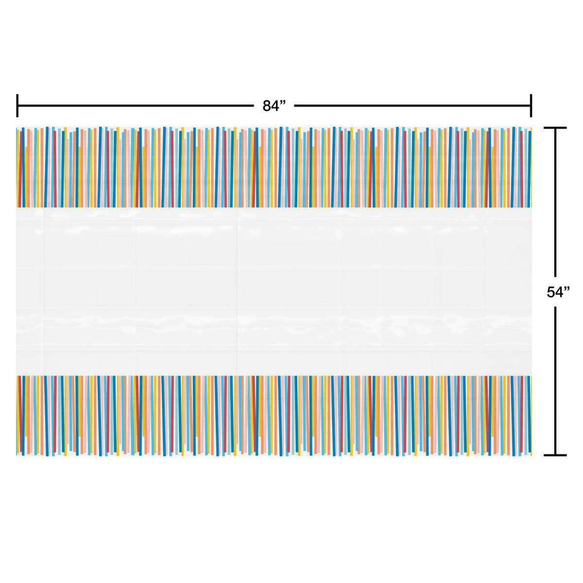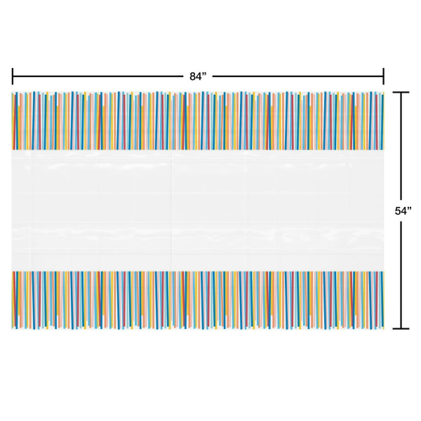 Make any celebration more festive with this colorful and practical Plastic Table Cover! The design features streamers in various colors on the ends with a white background. Its perfect for birthday pa…