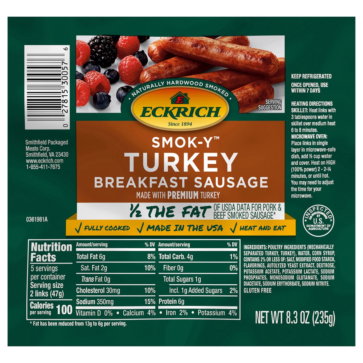 Eckrich Smok-Y Turkey Smoked Breakfast Sausage Links are crafted with just the right blend of spices and turkey for a delicious everyday meal your family will love. The smoked breakfast sausage links …