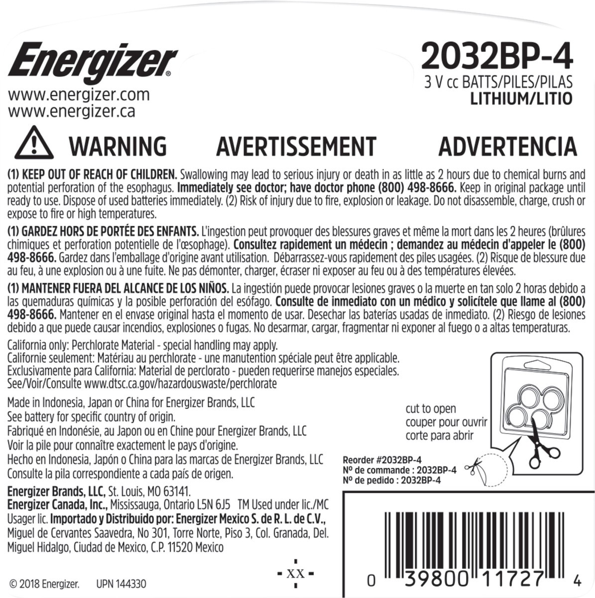 Energizer 2032 Batteries (4 Pack), 3V Lithium Coin Batteries