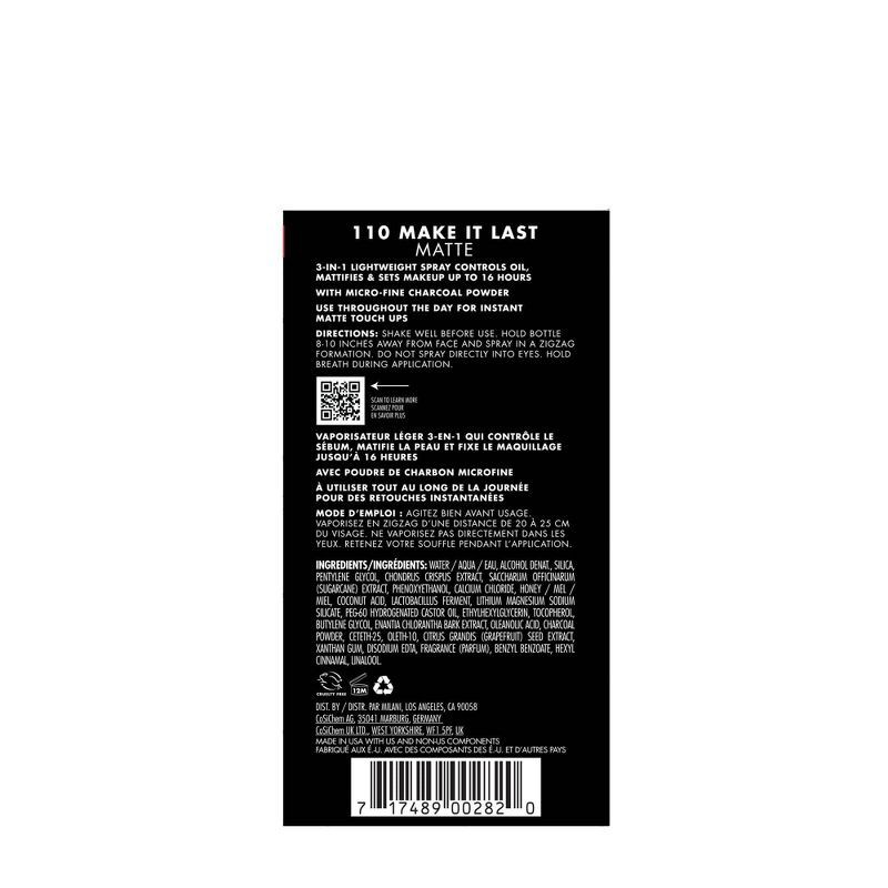 Say goodbye to oily shine! Now offered in Jumbo size, Milani Make It Last Matte - Matte Finish Charcoal Setting Spray is a real look locker. Designed to set & subtly blur like a soft filter, Make It L…