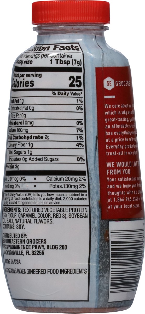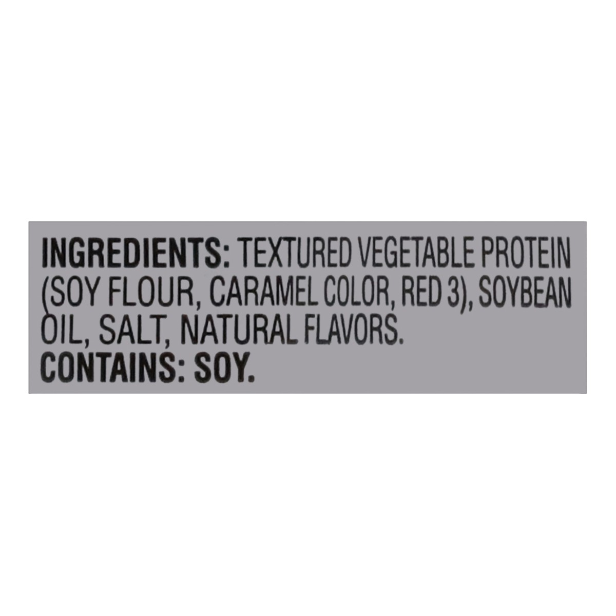 Textured Vegetable Protein (Soy Flour, Caramel Color, Red 3), Soybean Oil, Salt, Natural Flavors.