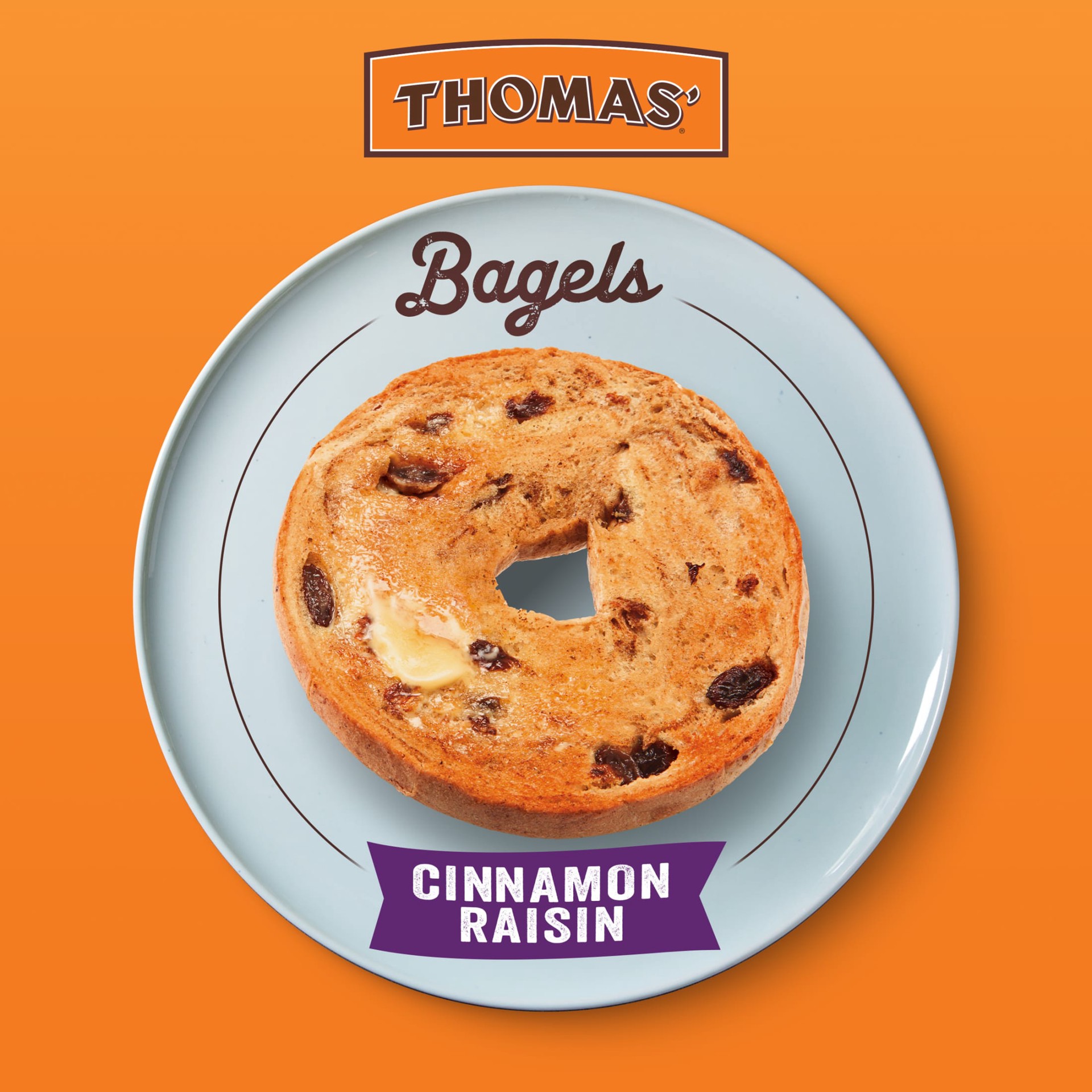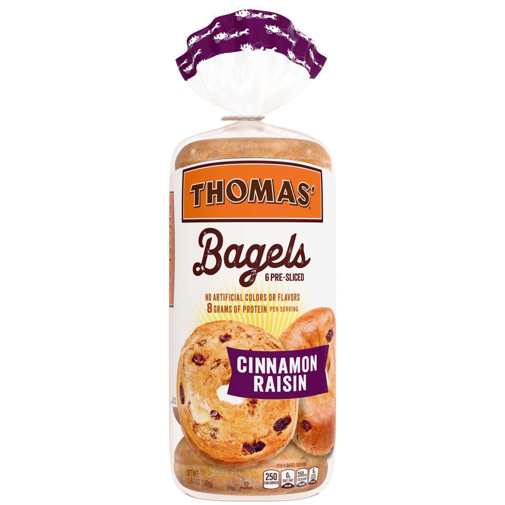 Thomas' Cinnamon Raisin Bagels, 6 count, 8g Protein, Kosher Bagels, 20 oz Bag
