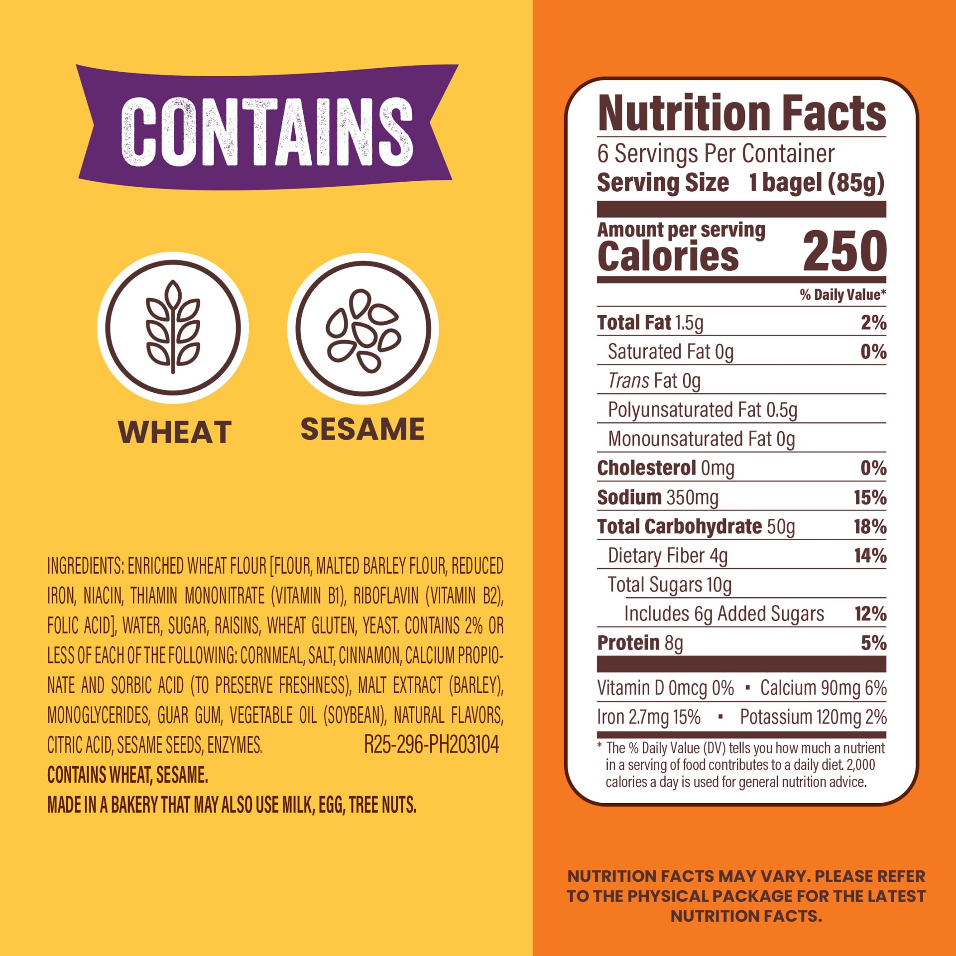 Enriched Wheat Flour [Flour, Malted Barley Flour, Reduced Iron, Niacin, Thiamin Mononitrate (Vitamin B1), Riboflavin (Vitamin B2), Folic Acid], Water, Sugar, Raisins, Wheat Gluten, Yeast, Contains 2% …