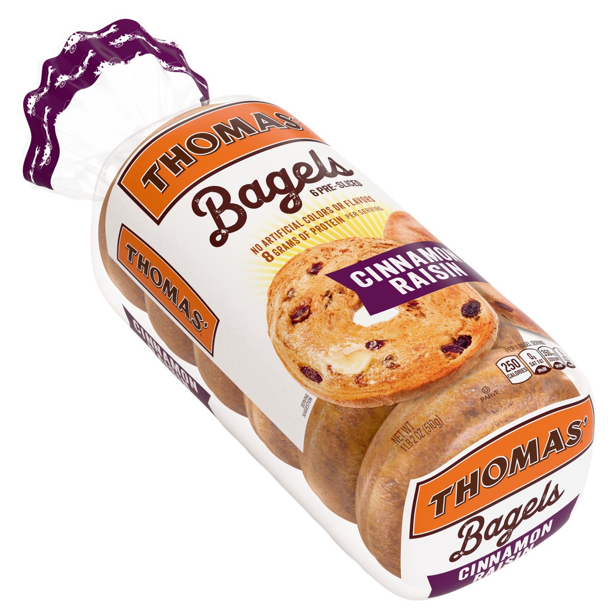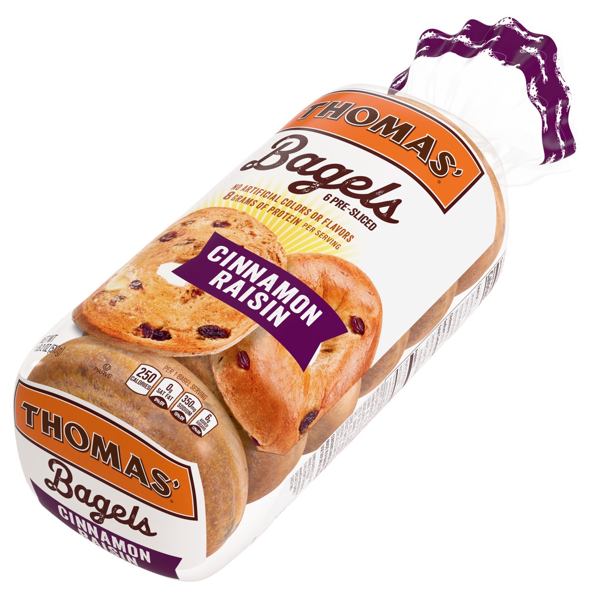 Thomas' Cinnamon Raisin Bagels, 6 count, 8g Protein, Kosher Bagels, 20 oz Bag