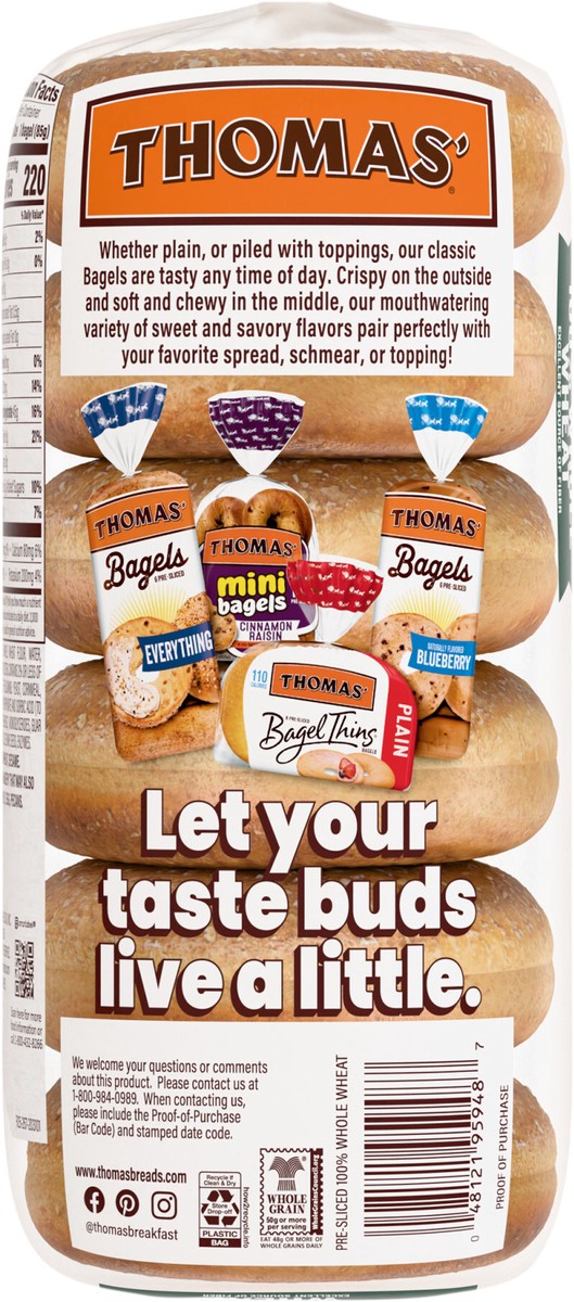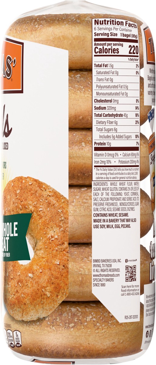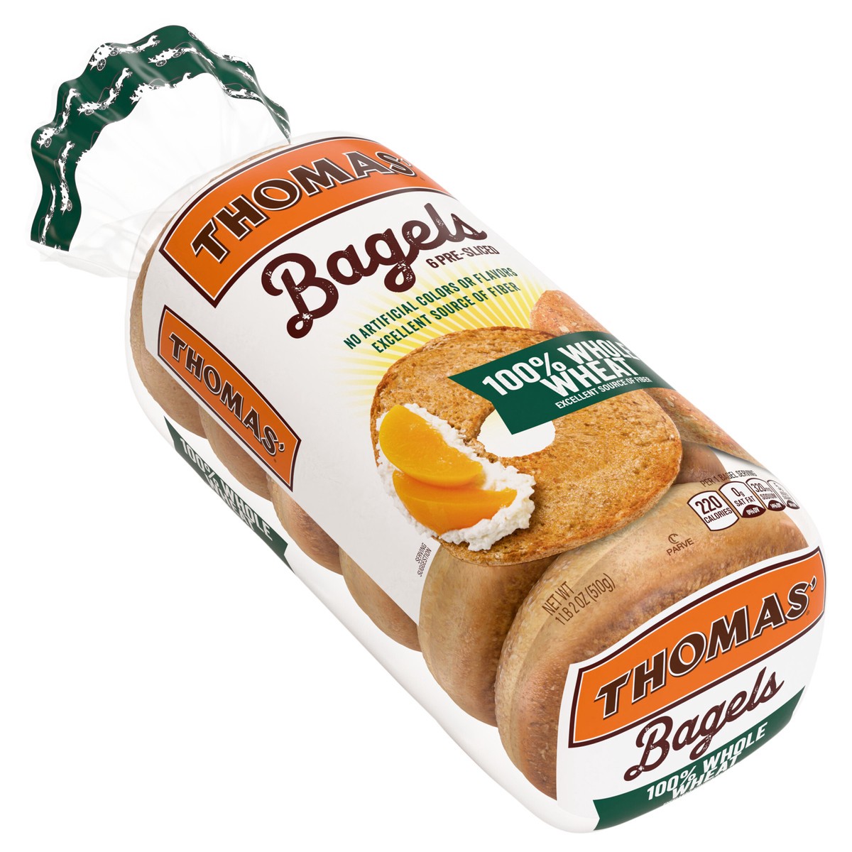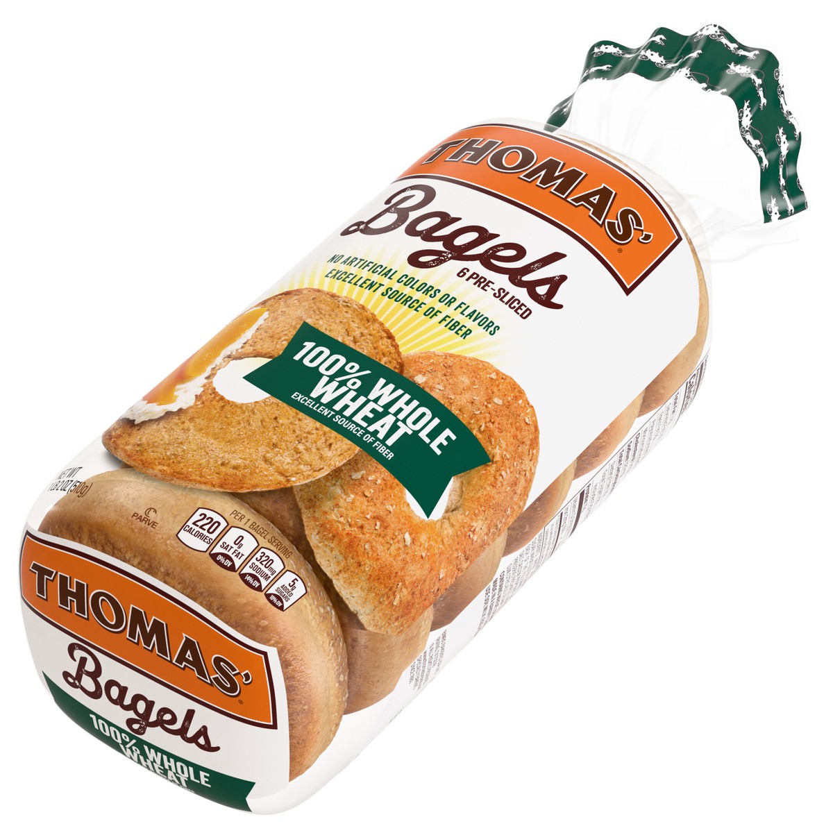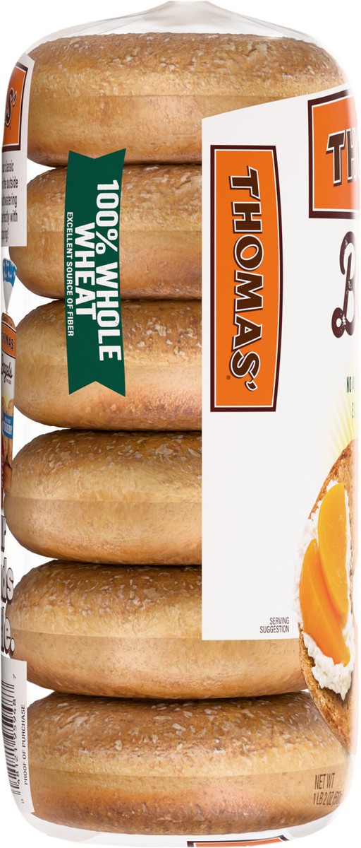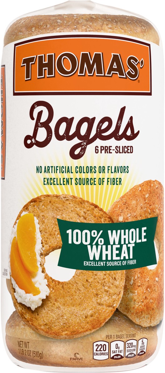 Thomas' 100% Whole Wheat Bagels, 6 count, 18 oz Bag