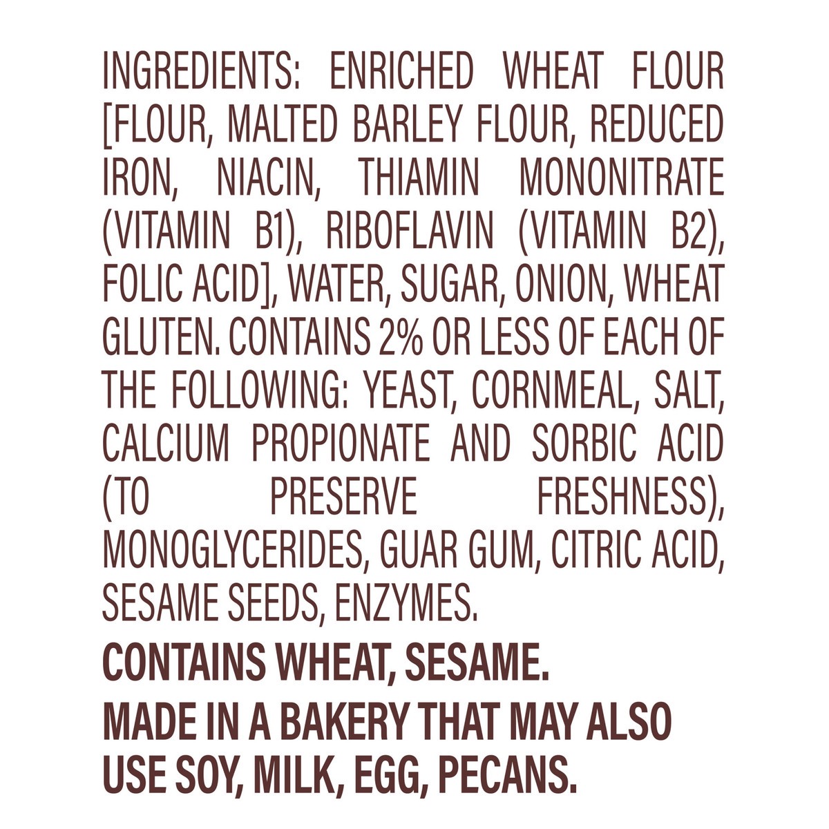 Contains wheat, sesame. made in a bakery that may also use soy, milk, egg, pecans.