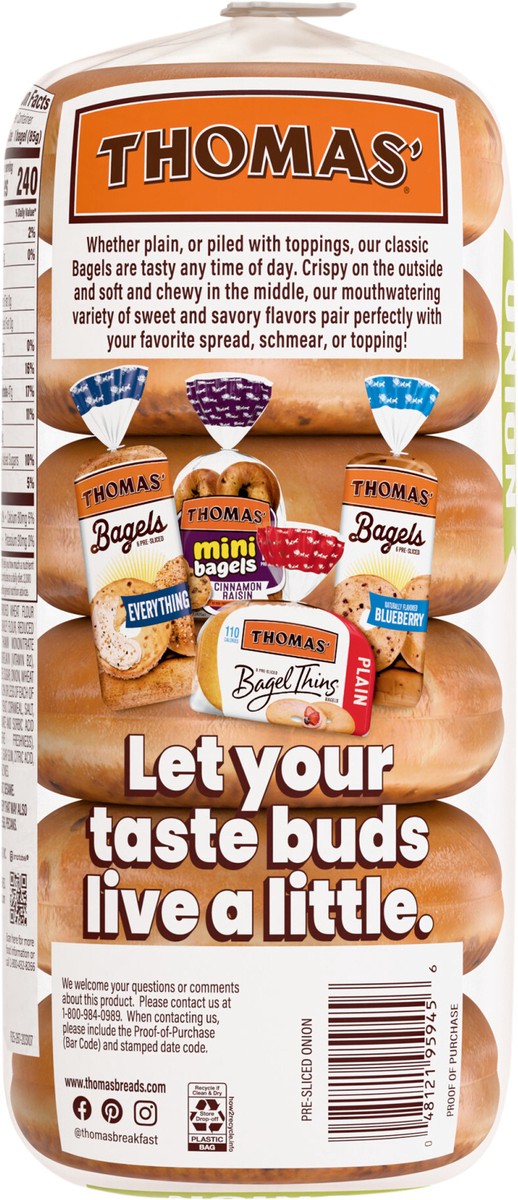 Thomas' Onion Bagels, 6 count, 8g Protein, 18 oz Bag