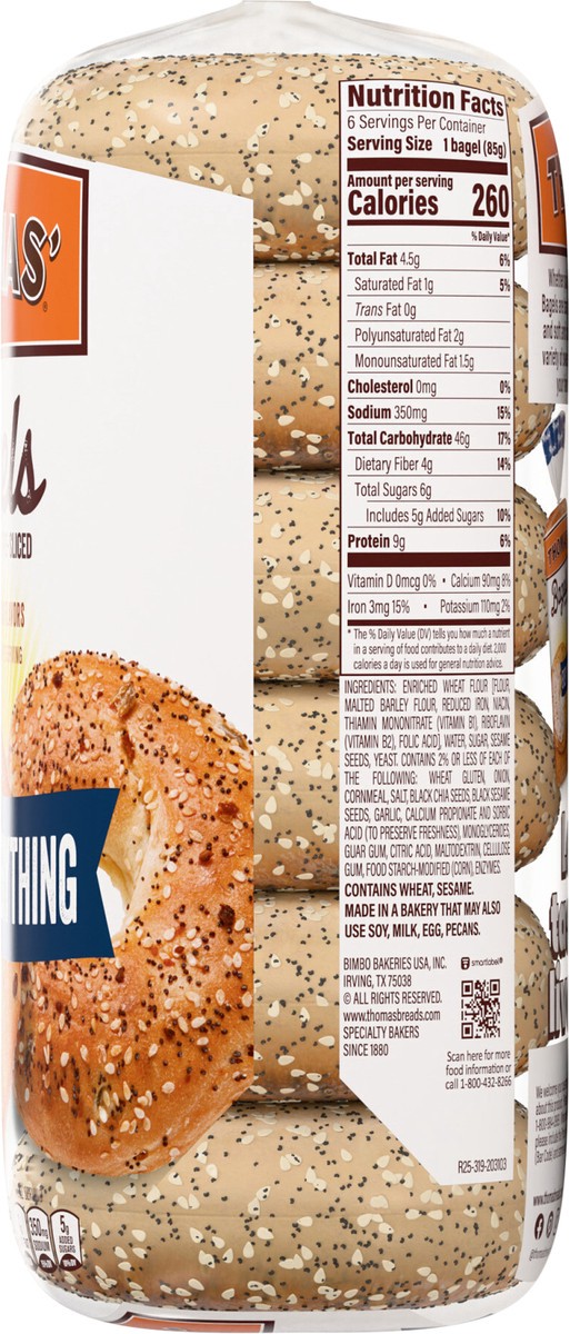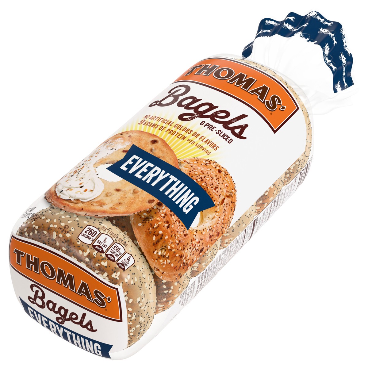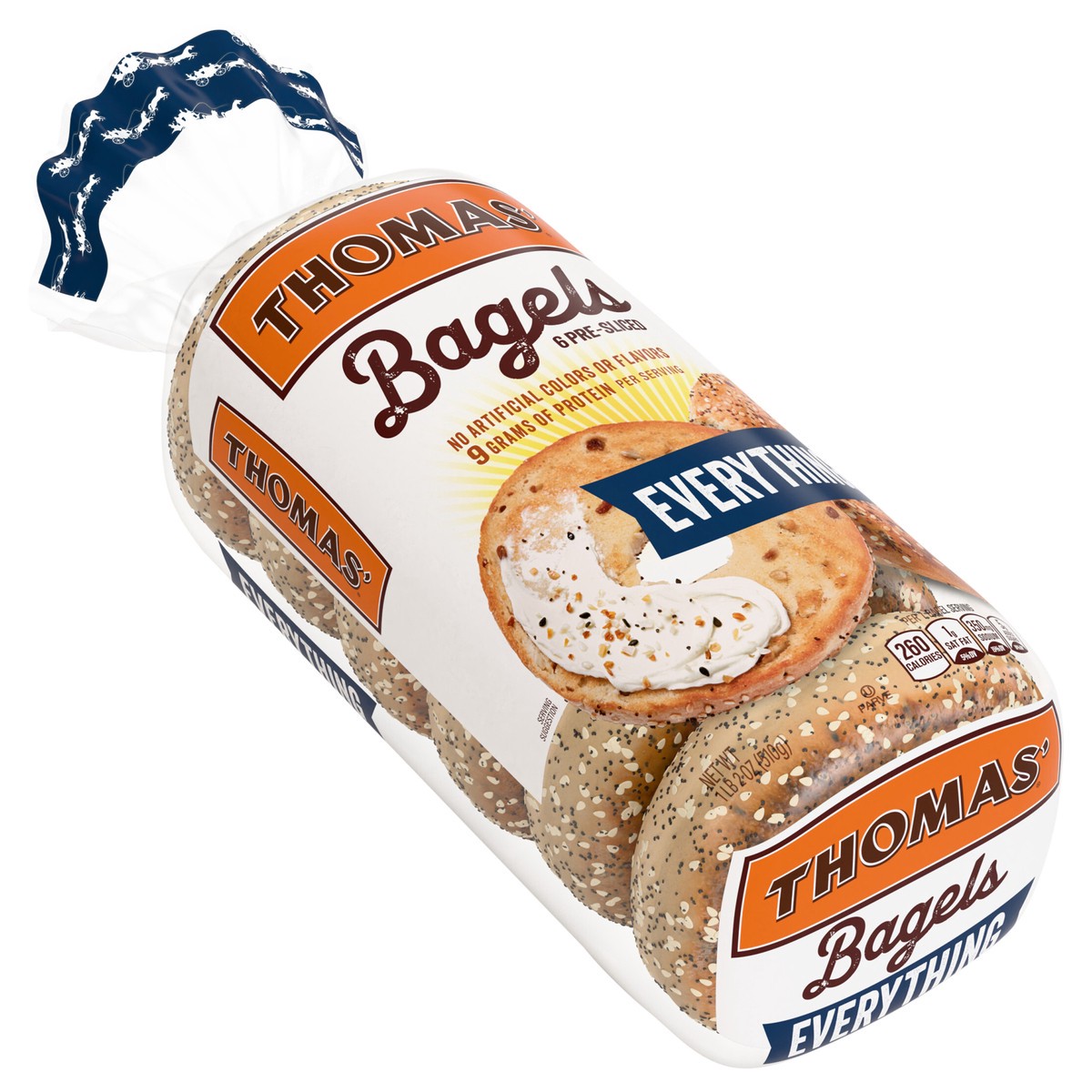Thomas' Everything Bagels, 6 count, 9g Protein, Kosher Bagels, 18 oz Bag