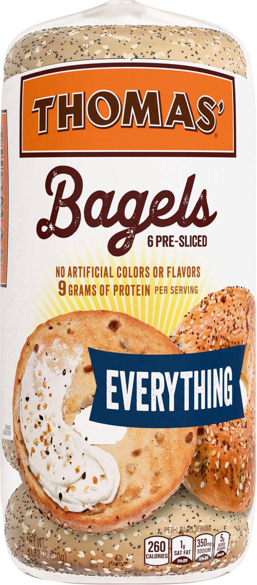 Thomas' Everything Bagels, 6 count, 9g Protein, Kosher Bagels, 18 oz Bag