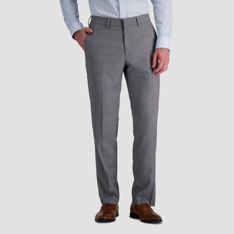 Haggar H26 Men's Tailored Fit Stretch Suit Pants - Gray 34x32: Midweight, Straight Leg, Dobby Fabric
