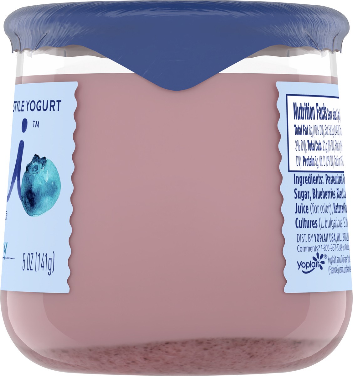 Pasteurized Grade A Milk, Cane Sugar, Blueberries, Black Carrot and Blueberry Juice (for Color), Natural Flavor, Pectin, Yogurt Cultures (L. Bulgaricus, S. Thermophilus).