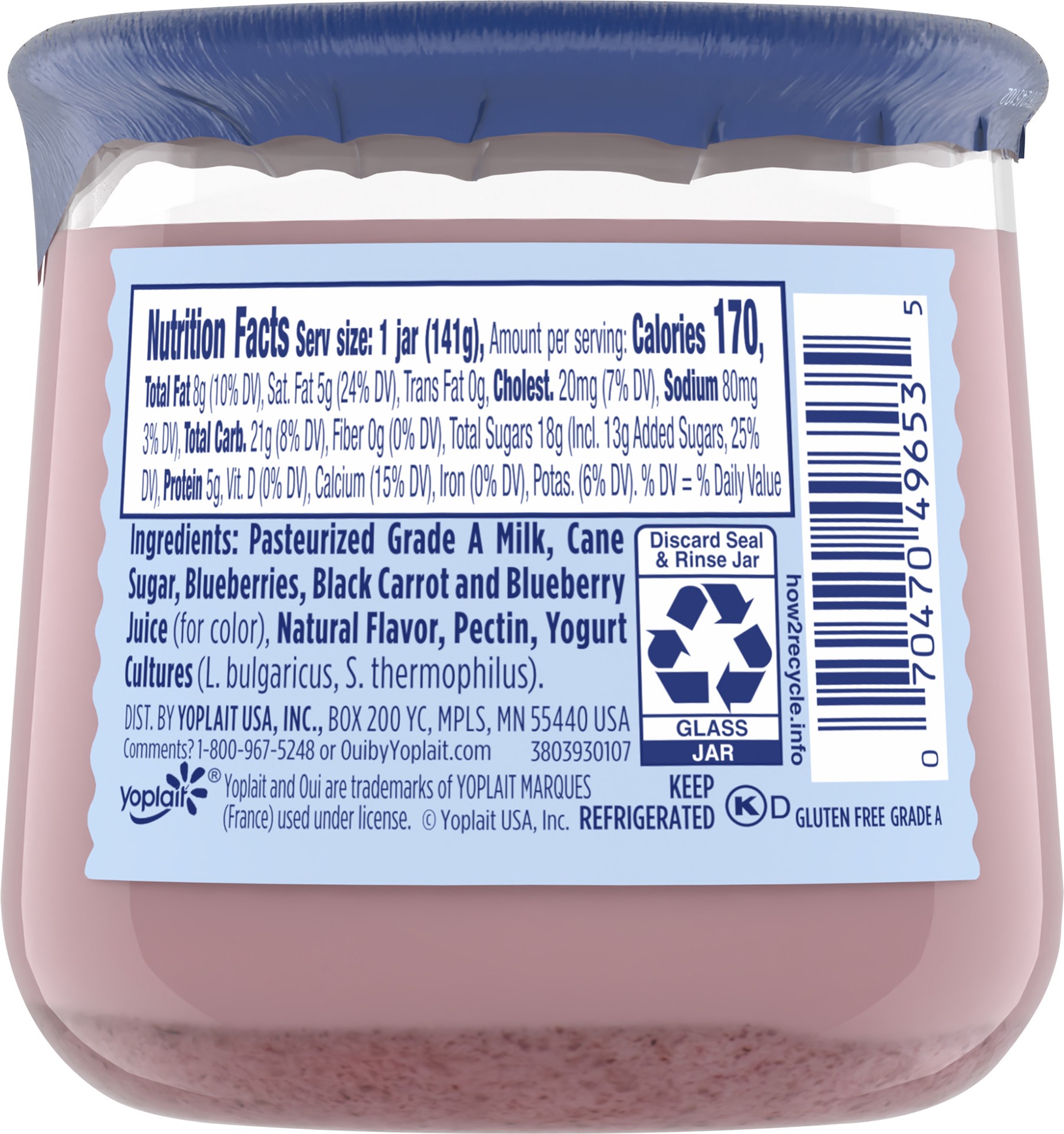 Inspired by a traditional French recipe, Oui by Yoplait Blueberry Yogurt creates a moment of pure enjoyment in every spoonful. The gluten-free yogurt starts with simple ingredients like whole milk, re…