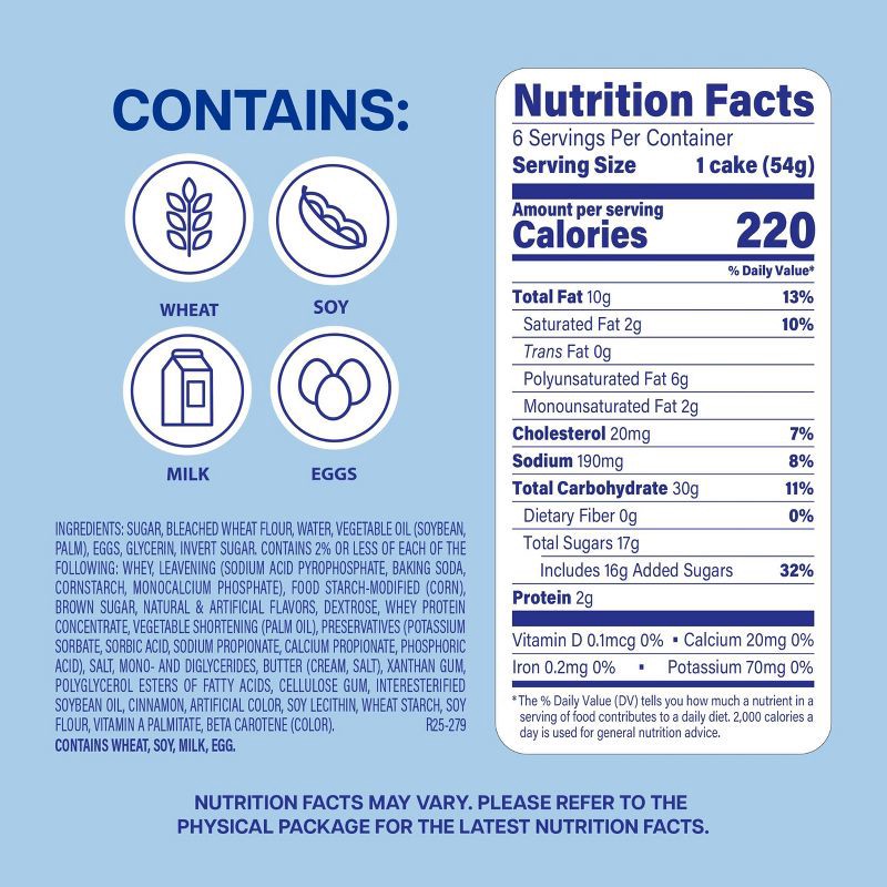 Sugar, Bleached Wheat Flour, Water, Vegetable Oil (Soybean, Palm), Eggs, Glycerin, Invert Sugar, Contains 2% or Less of Each of the Following: Whey, Leavening (Sodium Acid Pyrophosphate, Baking Soda, …