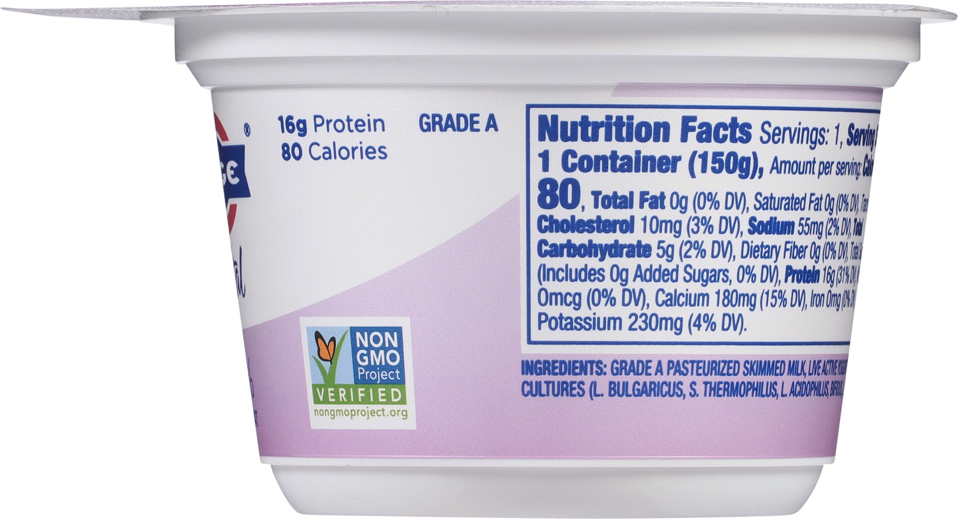 Grade A Pasteurized Skimmed Milk, Live Active Yogurt Cultures (L. Bulgaricus, S. Thermophilus, L. Acidophilus, Bifidus, L. Casei).