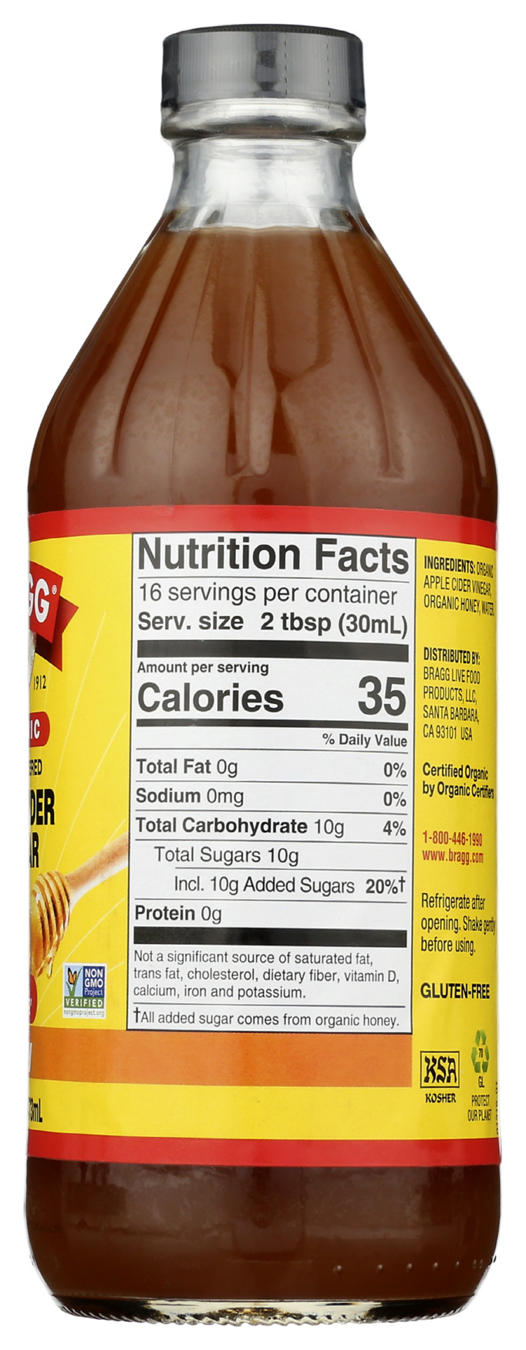 Organic Apple Cider Vinegar, Organic Honey, Water.