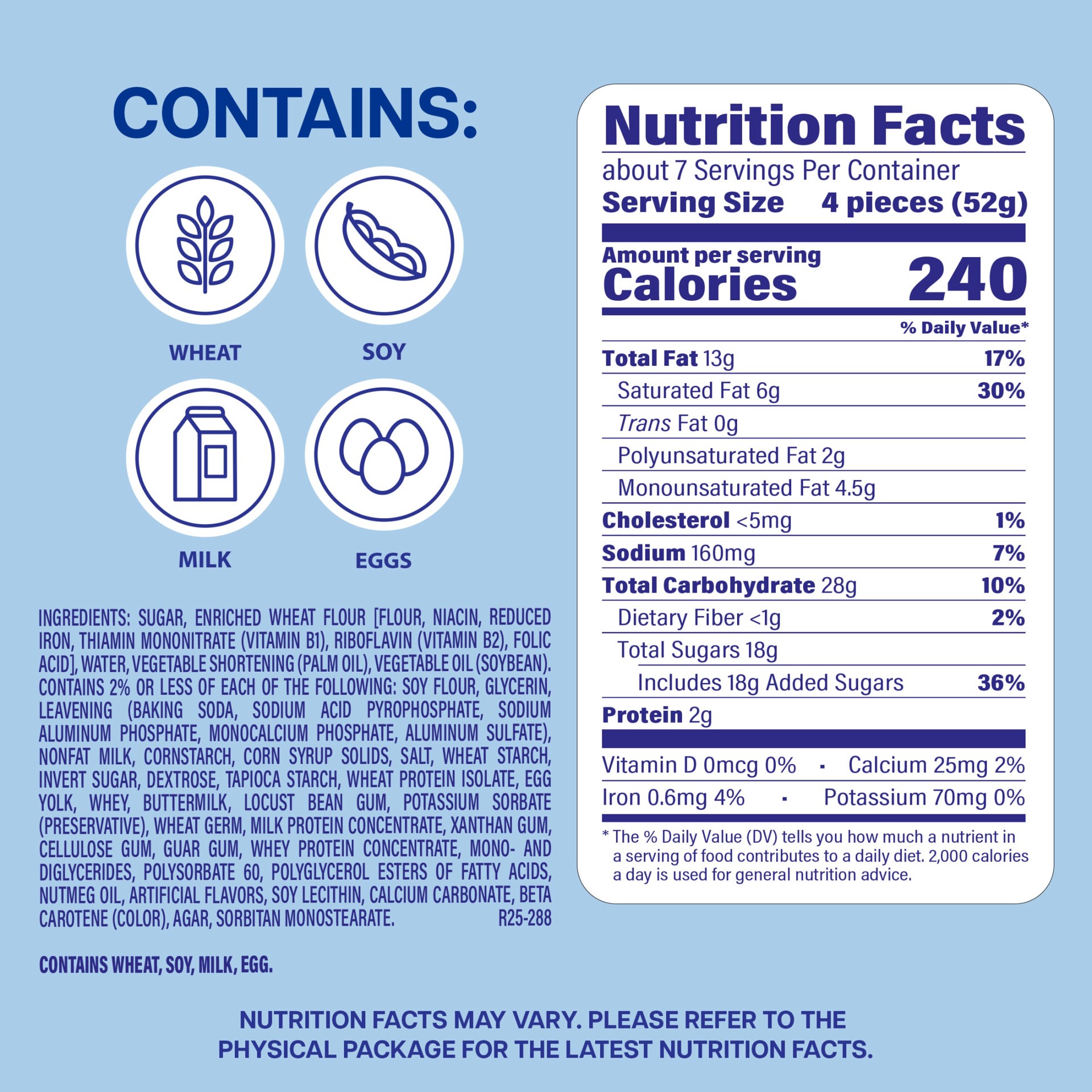 Sugar, Enriched Wheat Flour [Flour, Niacin, Reduced Iron, Thiamin Mononitrate (Vitamin B1), Riboflavin (Vitamin B2), Folic Acid], Water, Vegetable Shortening (Palm Oil), Vegetable Oil (Soybean), Conta…