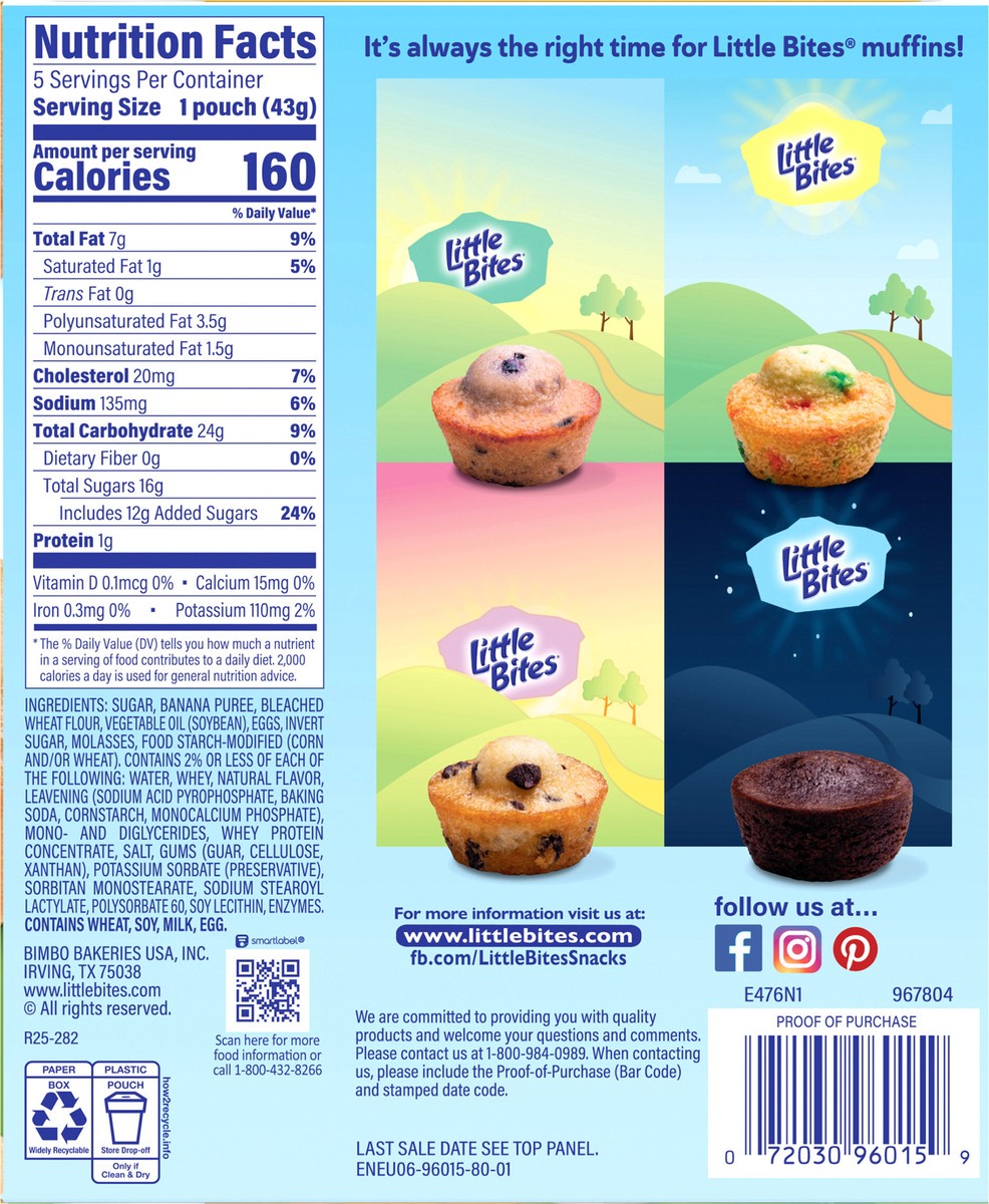 Indulge in the delightful taste of Little Bites Banana Muffins, 5 packs, Made with Real Banana Mini Muffins, 7.5 oz Multipack! Perfect for kids and anyone craving a quick breakfast or snack, these min…