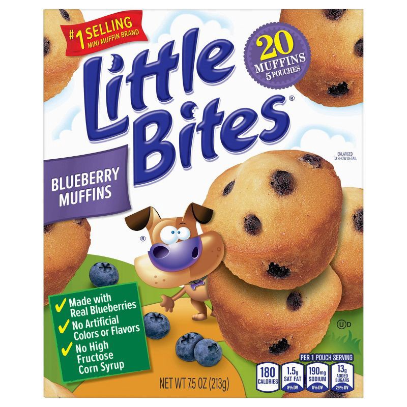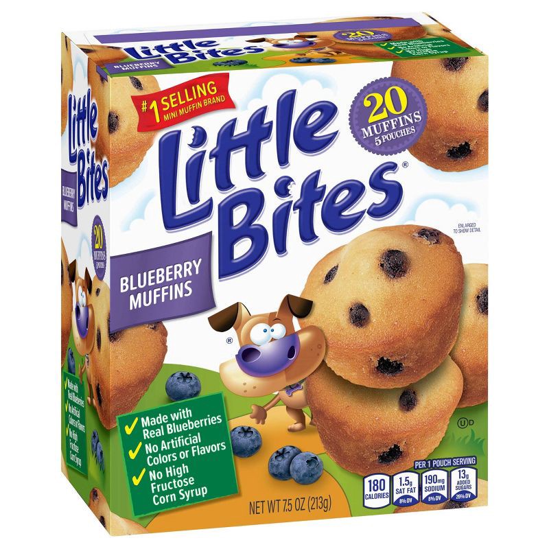 Indulge in the delightful taste of Little Bites Blueberry Muffins, 5 packs, Real Blueberries Mini Muffins, 7.5 oz Multipack, a convenient and quick snack option perfect for any kid's breakfast or lunc…
