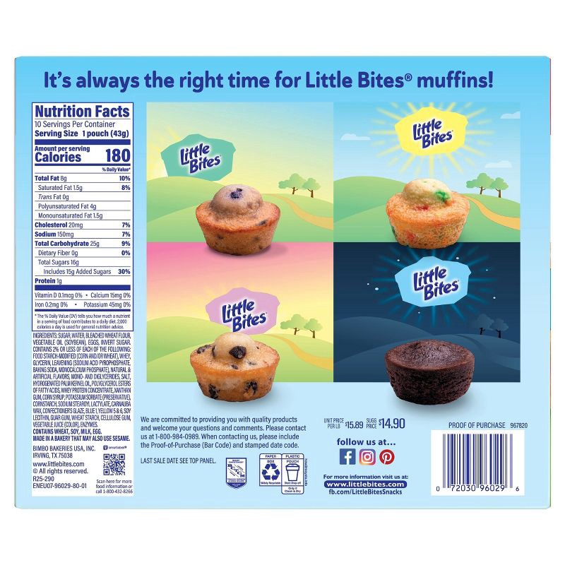 Indulge in the delightful world of Little Bites Party Cake Muffins, 10 packs, Cake and Sprinkles Mini Muffins, 15 oz Multipack. These mini muffins are bursting with cake and sprinkles, perfect for bot…