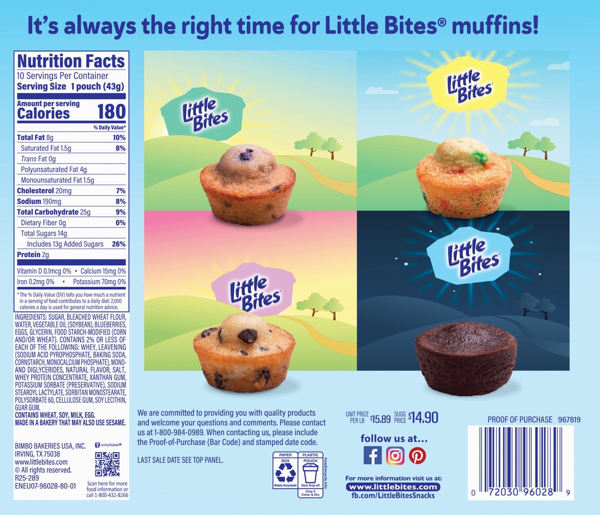 Entenmann's Little Bites Blueberry Muffins, 10 packs, Real Blueberries Mini Muffins, 15 oz Multipack