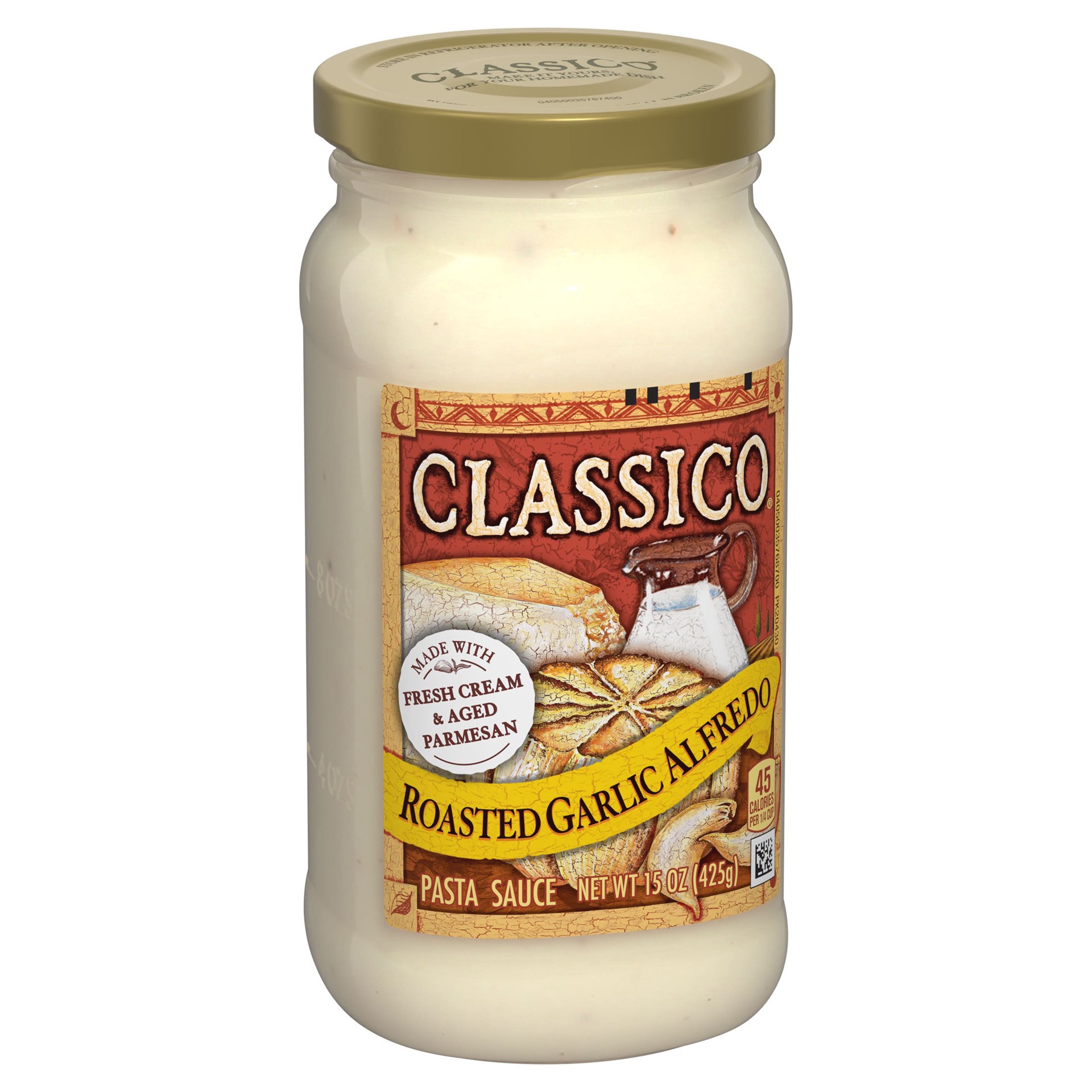 Classico Roasted Garlic Alfredo Pasta Sauce is made the way the earliest Alfredo sauces were made in Rome. Here, fresh cream is blended with roasted garlic and Parmesan cheese for an authentic rich, m…
