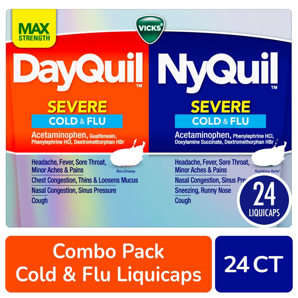 Active Ingredients: Acetaminophen (325 mg)\, Pain reliever/fever reducer; Dextromethorpan HBr (10 mg)\, Cough suppressant; Doxylamine Succinate (6.25 mg)\, Nasal Decongestant; Phenylephrine HCI (5 mg)…