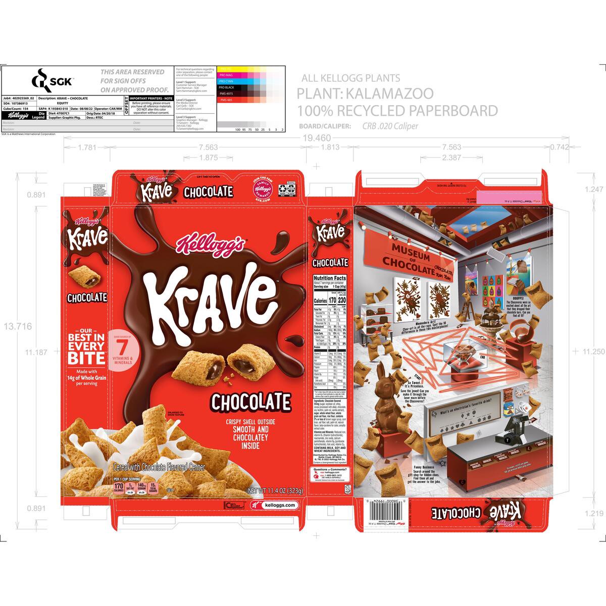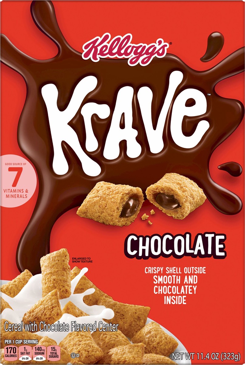 Crafted for chocovores, Kellogg's Krave Chocolate breakfast cereal is a distinctly delicious combo of crunchy multigrain cereal shells and filling made with real chocolate. A good source of 7 vitamins…