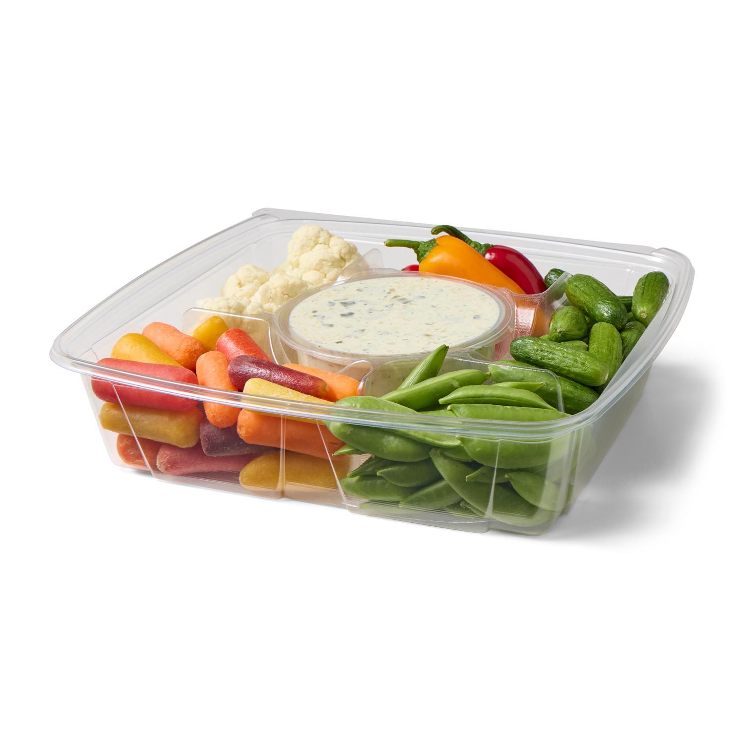 Enjoy a colorful assortment of fresh vegetables paired with a creamy dill pickle dip. Perfectly portioned for convenience, this tray offers a delightful mix of textures and flavors.