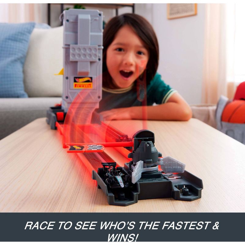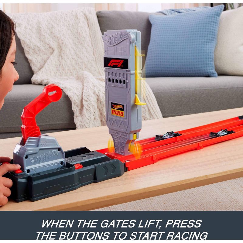 - Take on the spirit of real-life F1 racers with the Hot Wheels Racing Formula 1 Grid Start Track Set.