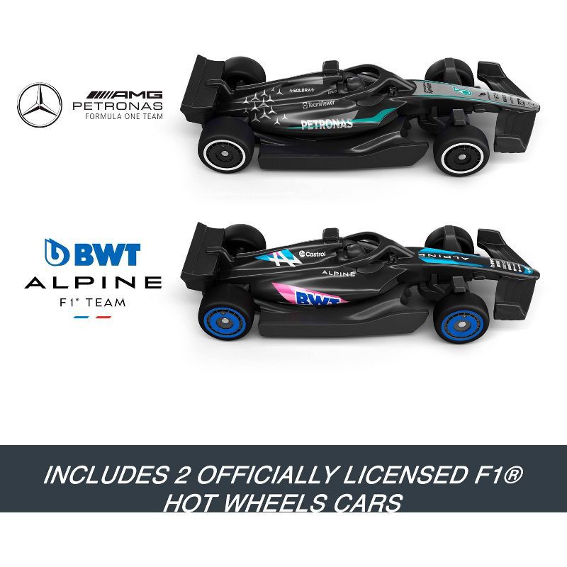 - Includes 2 1:64 scale die-cast Hot Wheels Formula 1 cars for immediate head-to-head racing. (Teams may vary.)