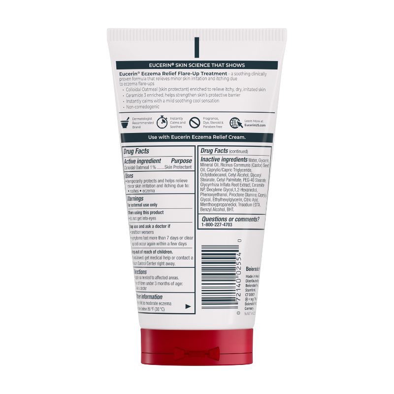 - Eucerin Eczema Cream Flare-Up Treatment is formulated with Colloidal Oatmeal (a skin protectant), Ceramide-3 and Licorice Root Extract