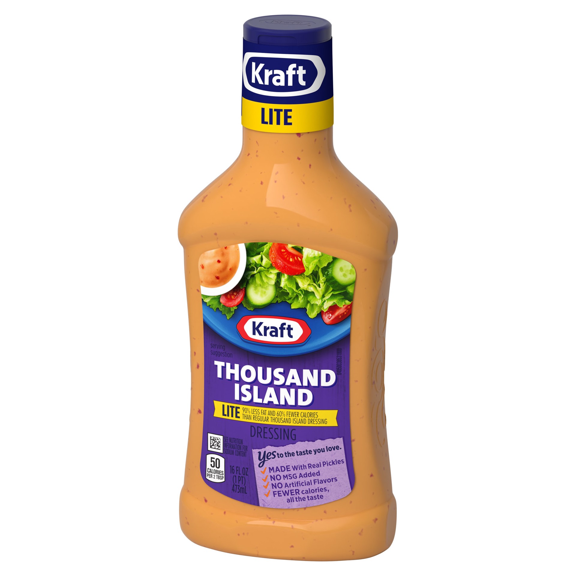Kraft Thousand Island Lite Dressing is a great way to add great flavor to sandwiches, burgers and salads. Our thousand island light dressing has 60% less calories and 90% less fat than regular dressin…