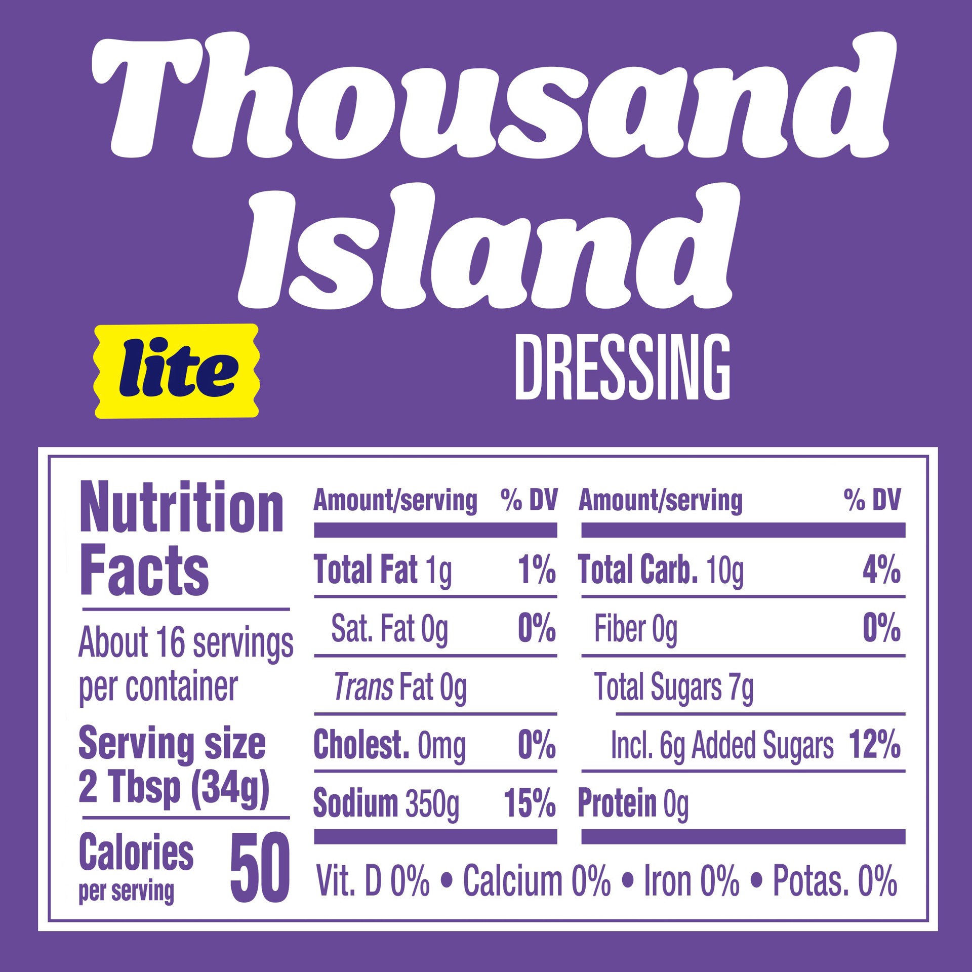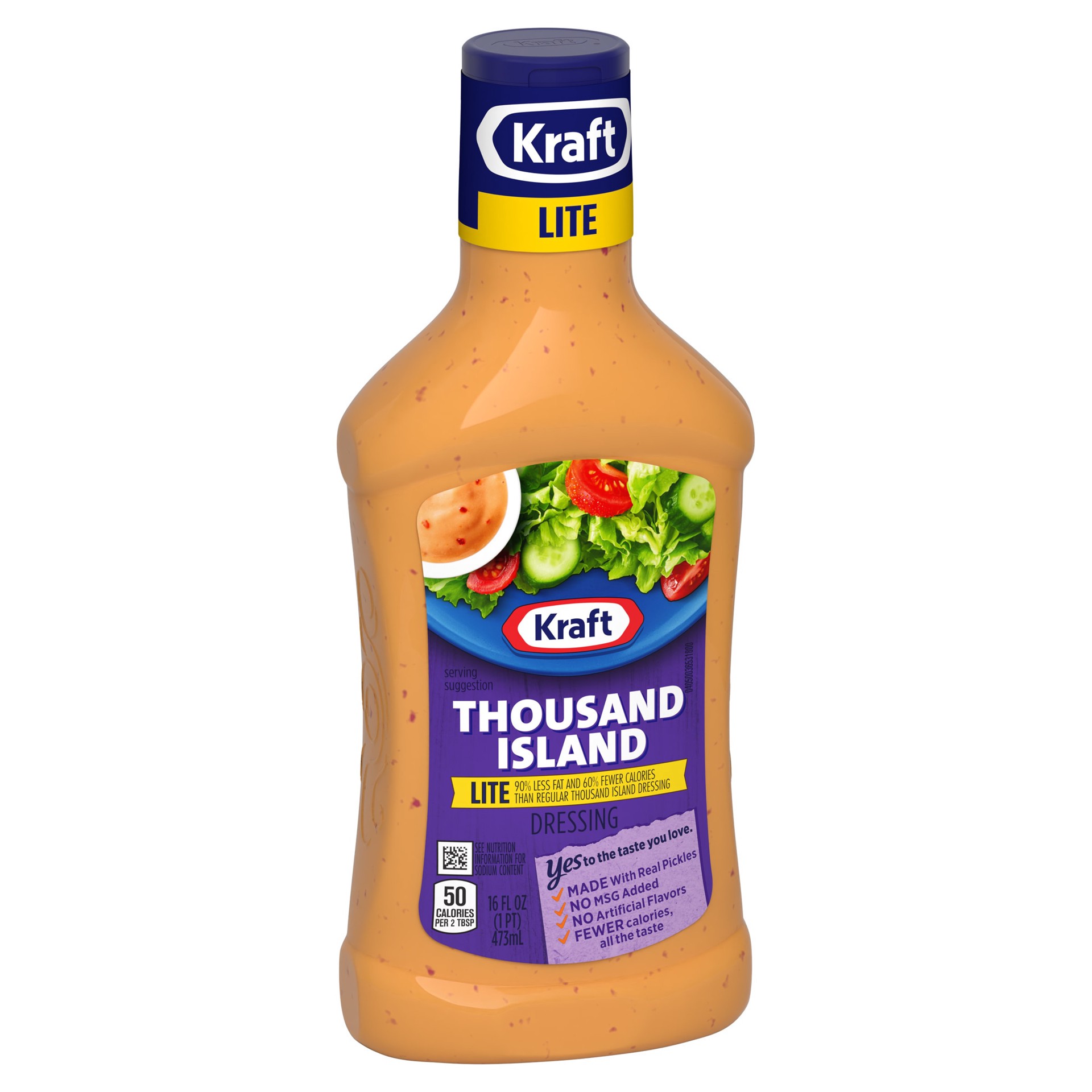 Kraft Thousand Island Lite Dressing is a great way to add great flavor to sandwiches, burgers and salads. Our thousand island light dressing has 60% less calories and 90% less fat than regular dressin…