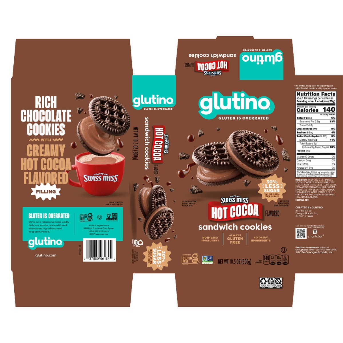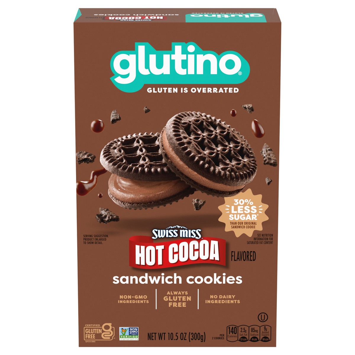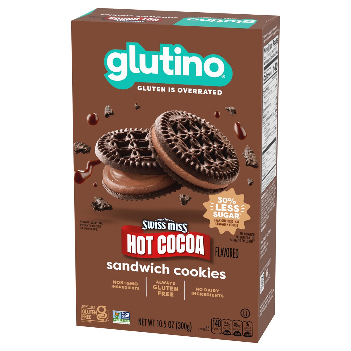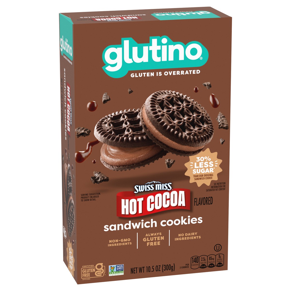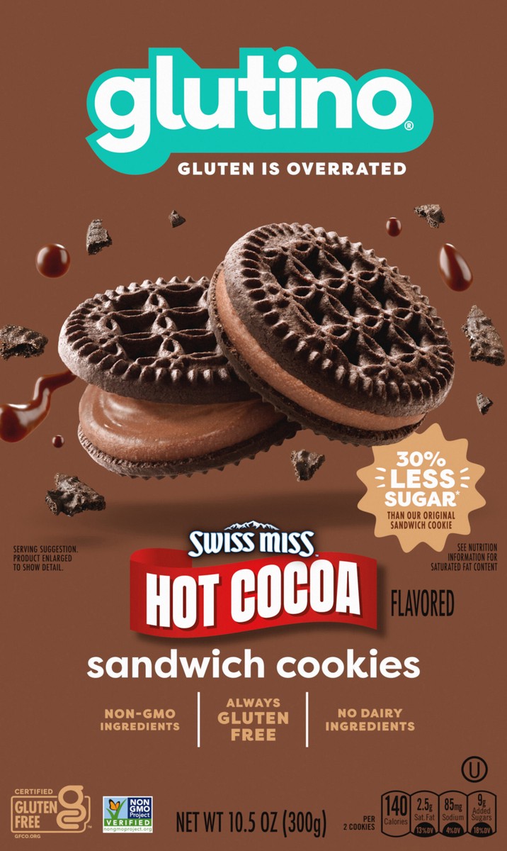 If you're looking to stock up on sweet gluten free snacks, grab a box of Glutino Swiss Miss Gluten Free Hot Cocoa Flavored Sandwich Cookies. These gourmet gluten free cookies are full of sweet hot coc…